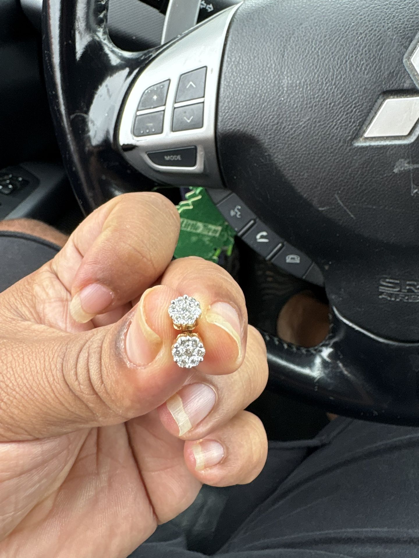 1 carat in diamonds each , 10k solid yellow gold …asking 200 , I purchased for 350 . I have a new pair so I have no need for these