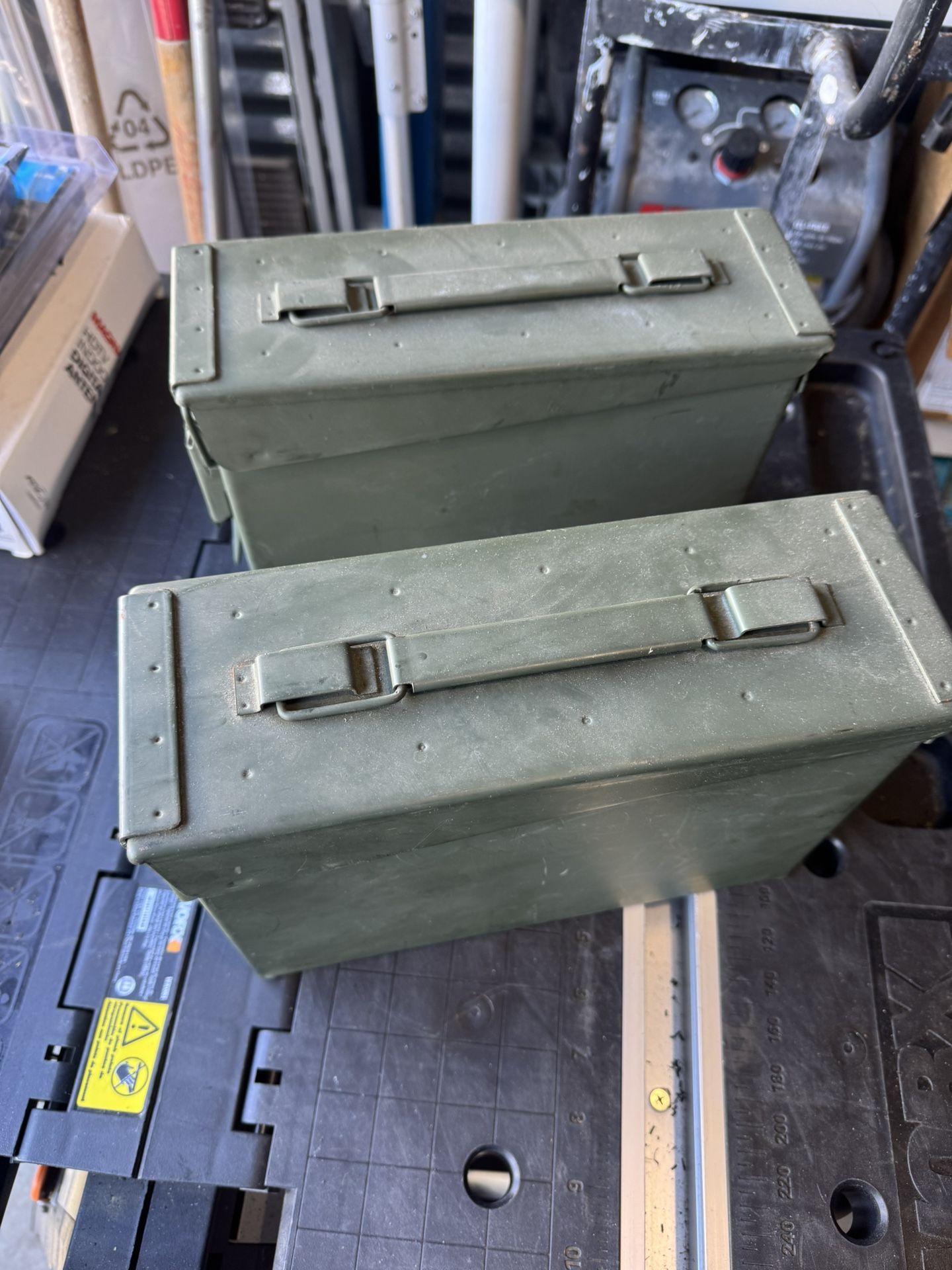 New small metal ammo box. Bought them for storage boxes in my Jeep. Never used. 3 3/4” w 7” t 10” l