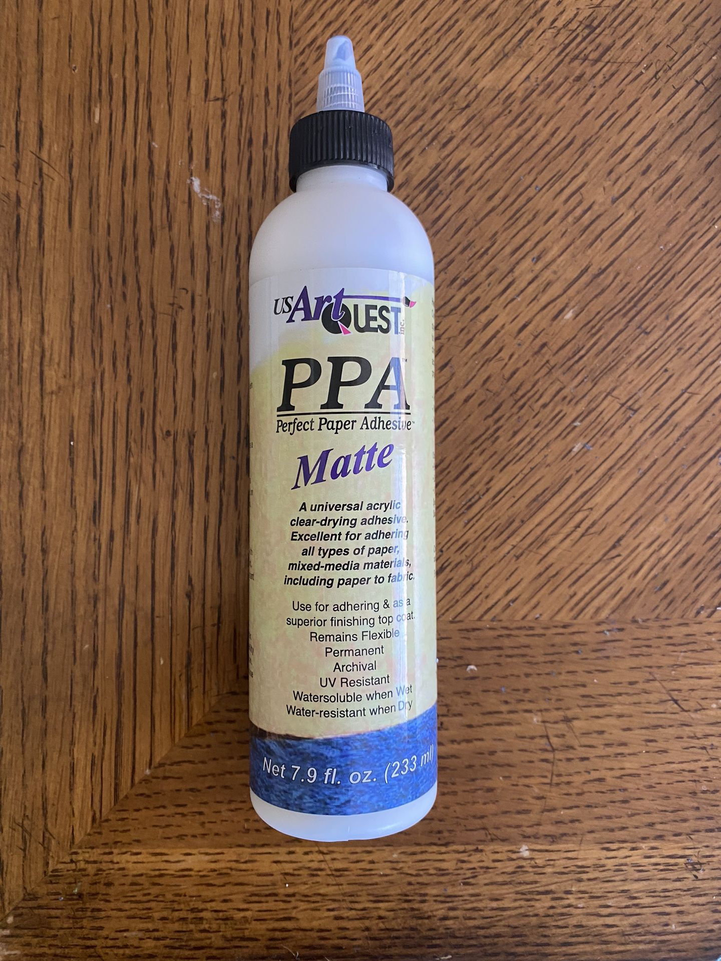 Are you a fan of Modpodge? Well then you will love this glue!!!!! It’s a reformulation of Modpodge. It’s delightfully smooth. Look at above photo for product benefits! Dries fairly quickly and will leave you with a water resistant finish. Water soluble when wet! A fantastic product!!! I use it for all my collaging art products or just as a clear paper glue. You will love it too! This product as I was told by the manufacturer will last 10 years. 7.9oz bottle Matte finish dries clear