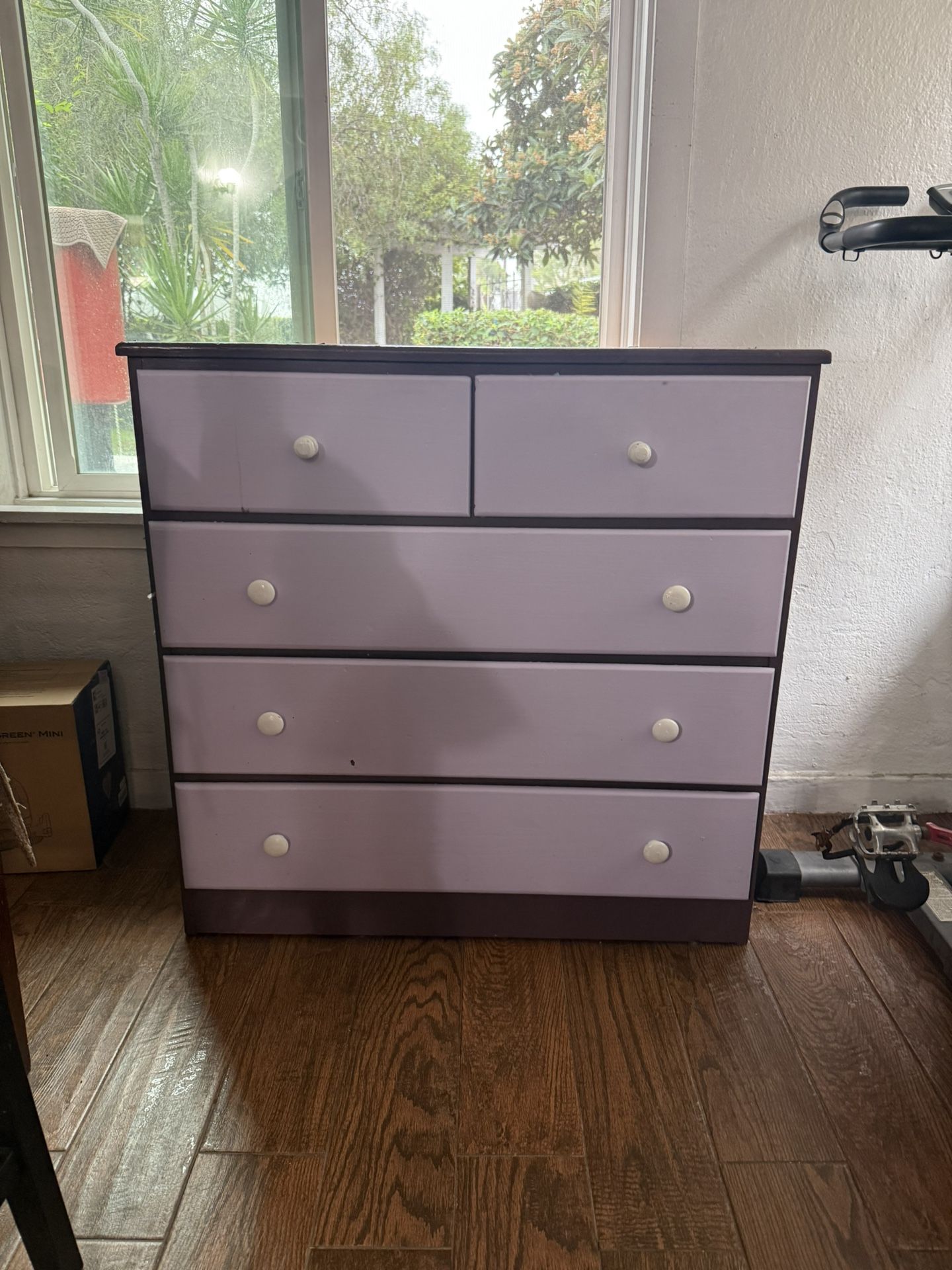 A bit of paint peeling at top Otherwise looks great All drawers functional Measurements: 35.5 inches wide 36 inches tall 16 inches deep