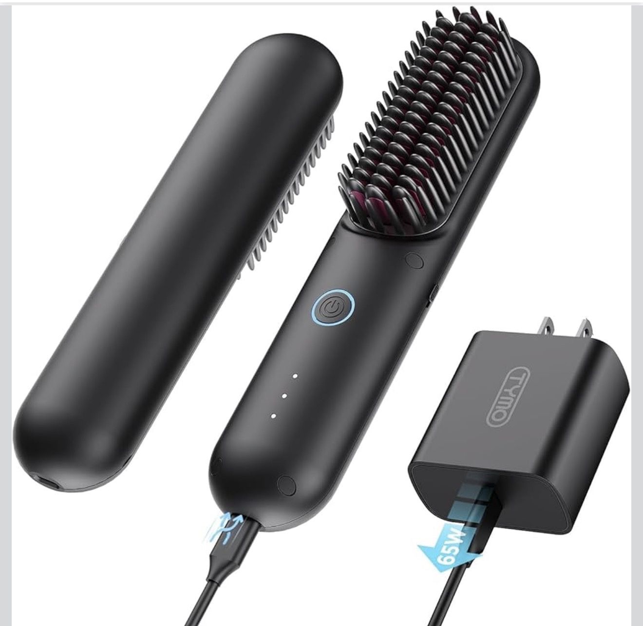 TYMO Porta PRO - Cordless Hair Straightening Brush for Travel, Mini Ionic Hot Comb Straightener for Women, Lightweight and Portable, Dual Power Wirele