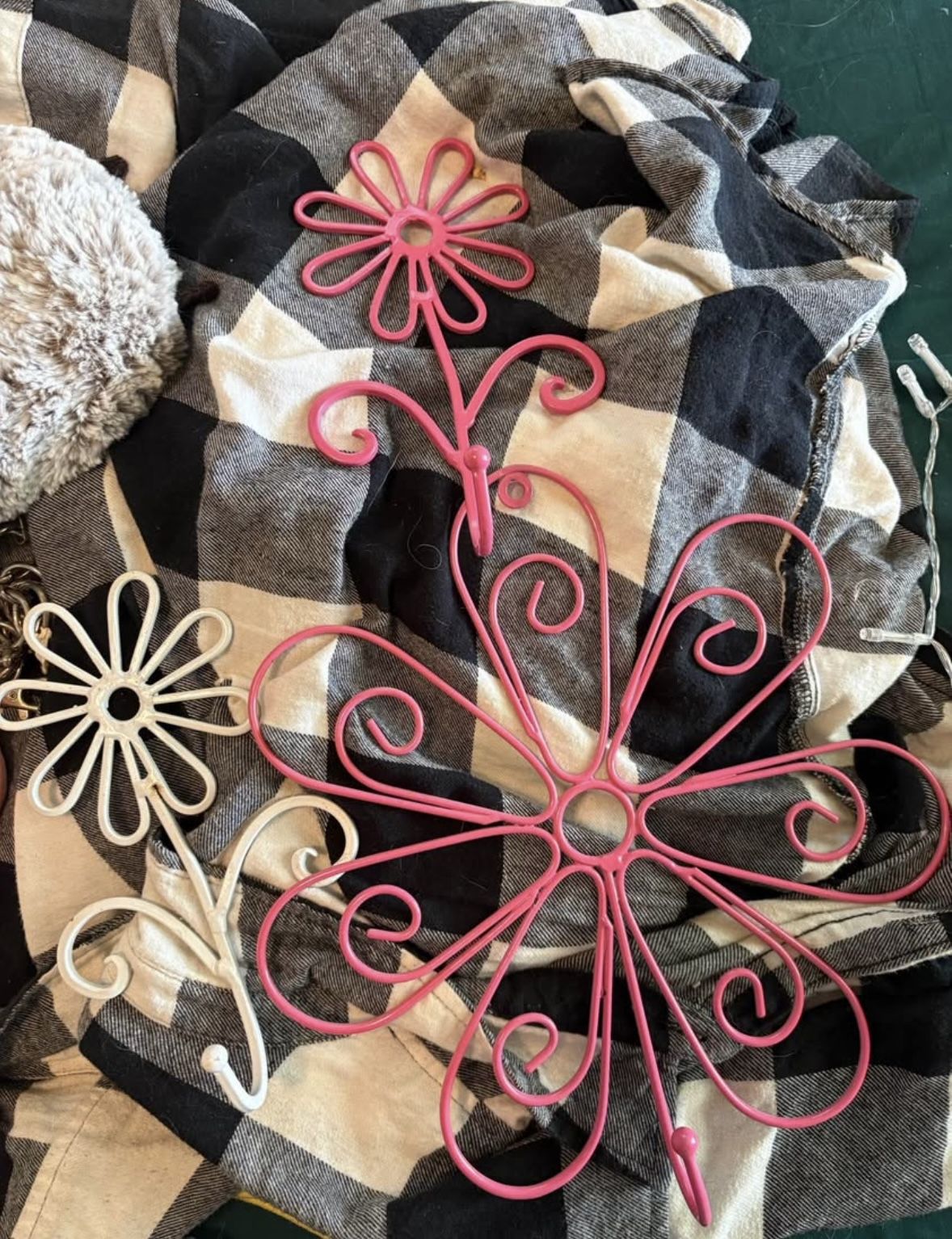 Hooks onto nails, good for jewelry, trinkets, etc.