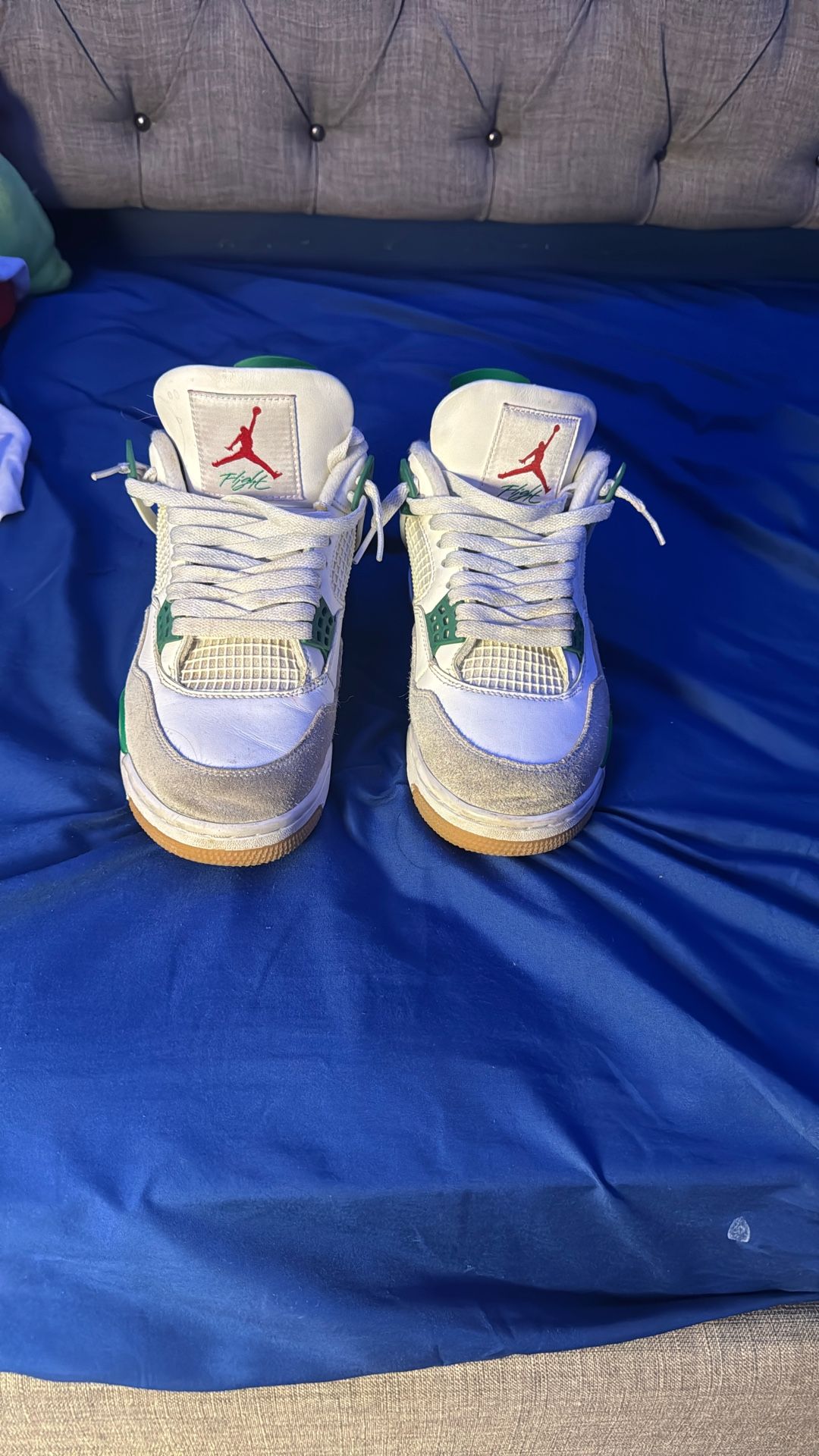 These are Jordan 4 Pine greens size 8,5 worn a couple times pretty okay condition 200$ willing to negotiate