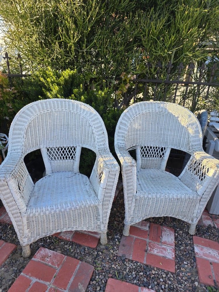 (2) White Wicker Chairs
