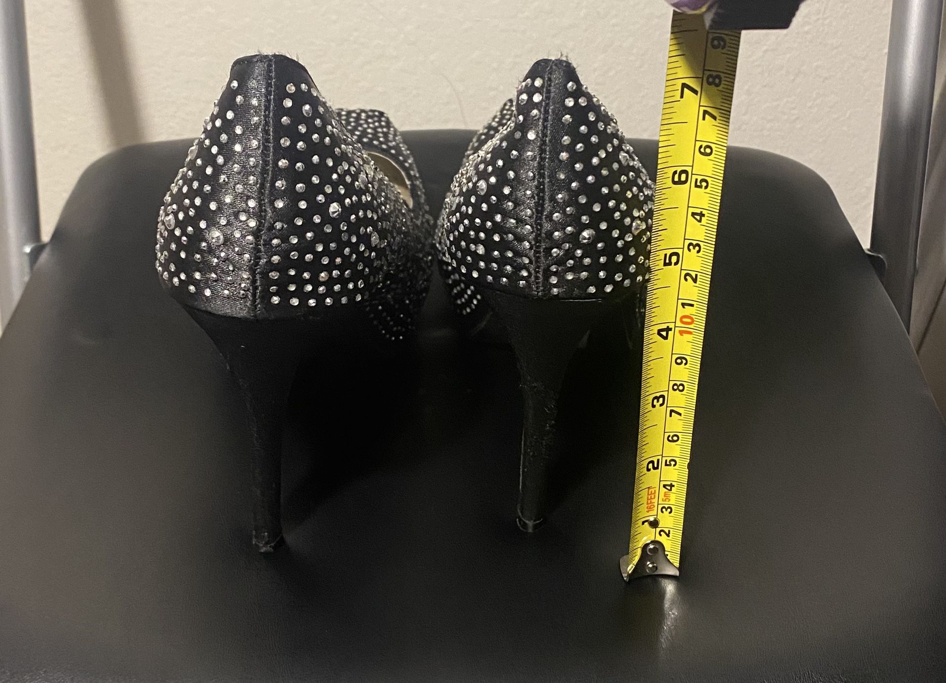 By Forever 21 Black w/Rhinestones Platforms. Very good condition