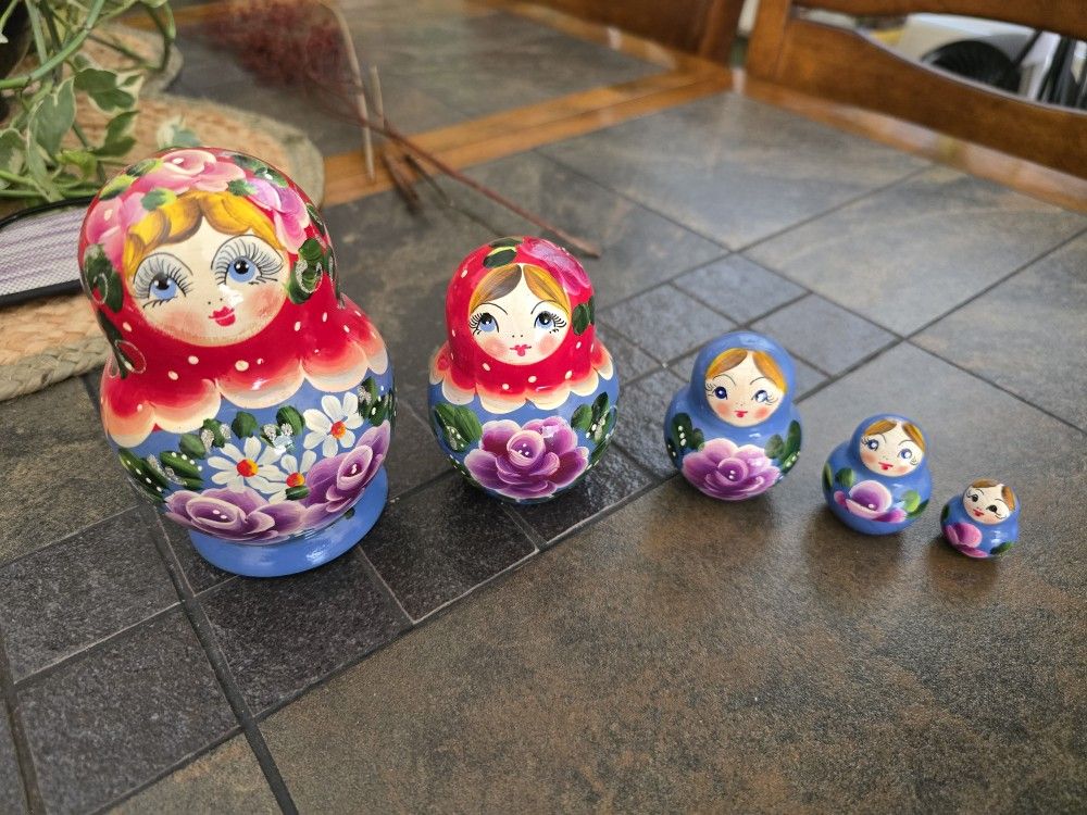 Hand painted wooden nesting dolls from Moldova. Perfect condition.