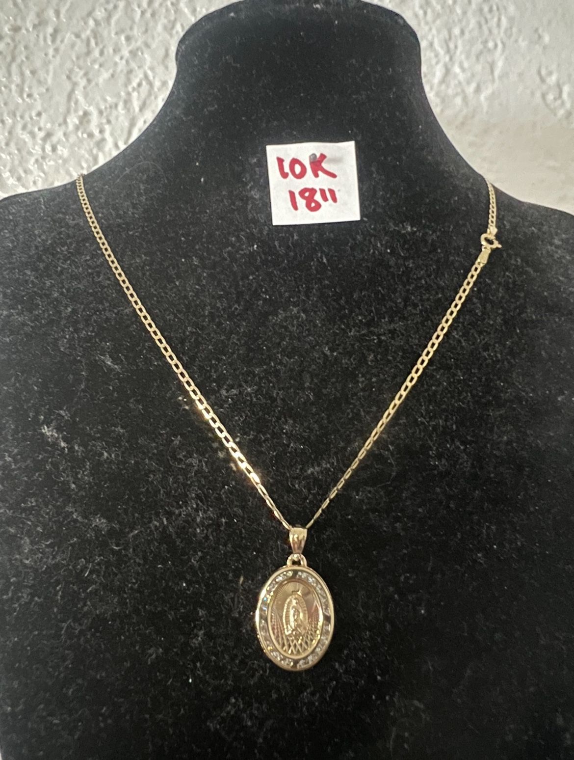 10K Solid Gold Chain and Pendant For Wedding 18 Inches Long