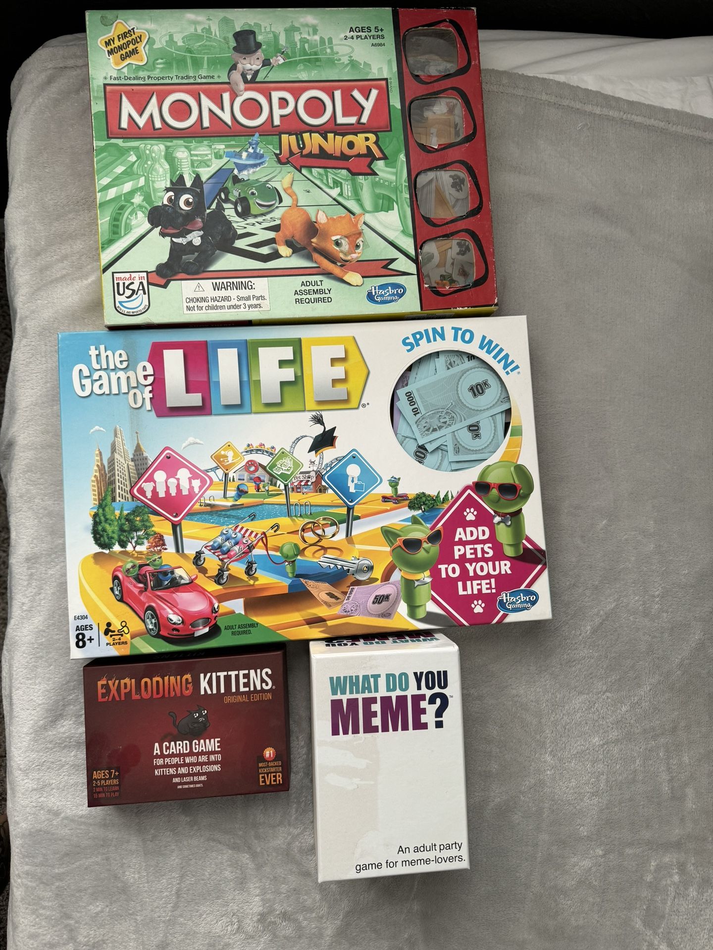 Complete Board Games: Monopoly Junior, Life, Exploding Kittens, What Do You Meme Pick up in Ramona