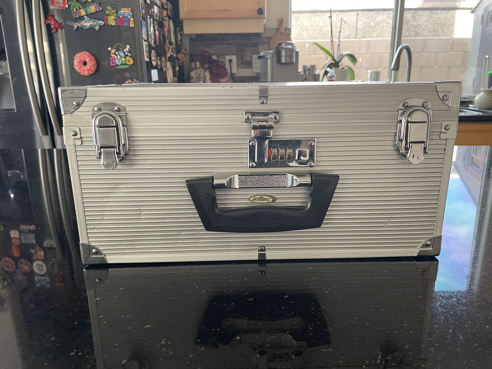 Intel aluminum game cube travel case w/lock combination,latches are in great shape,combination lock works great a few signs of use but overall is in great shape 15 1/2 in L x 12 in w x 71/2 in ht $40 Thanks