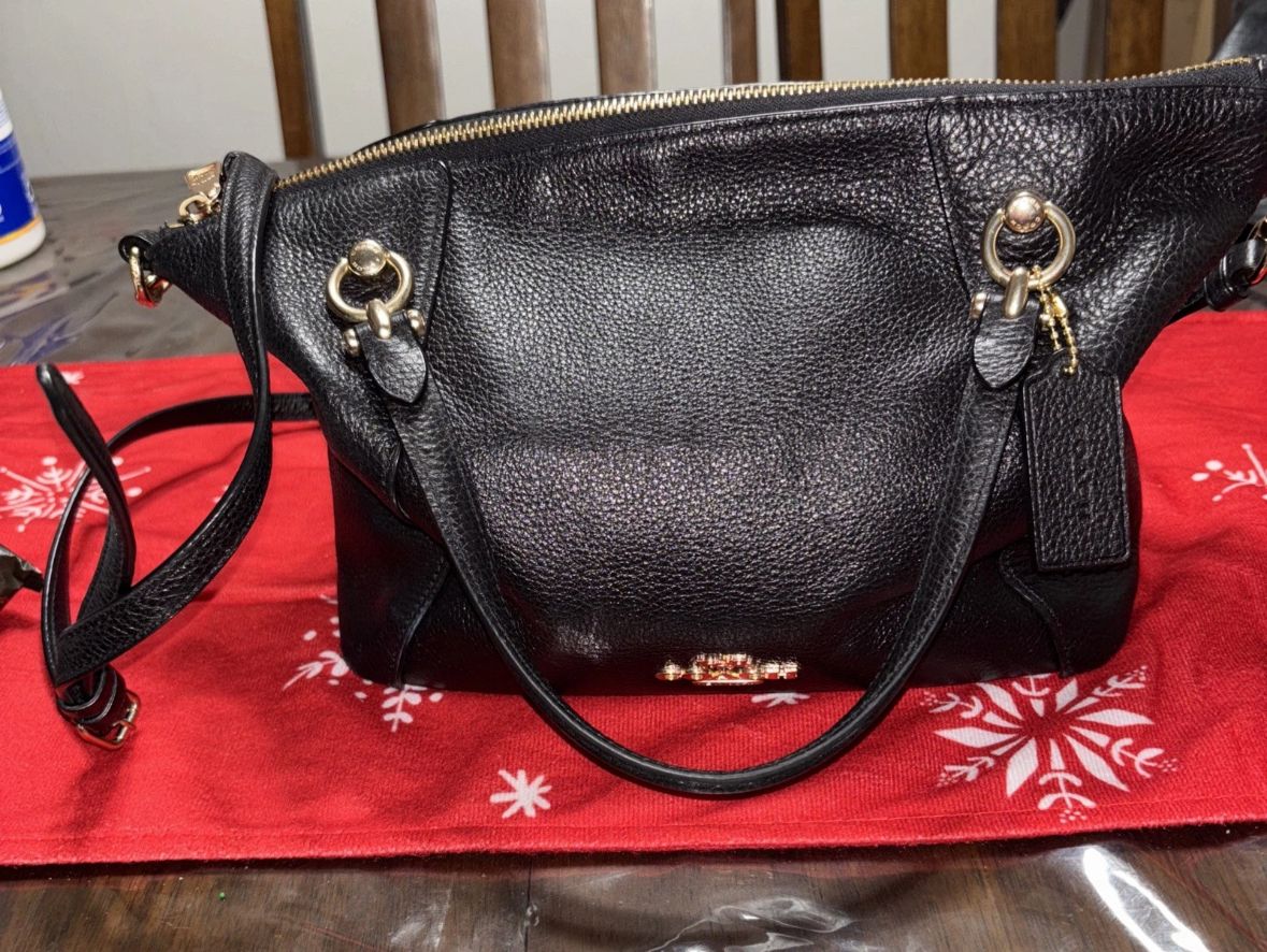 Coach Kacey Satchel Black Pebble Leather Shoulder Bag