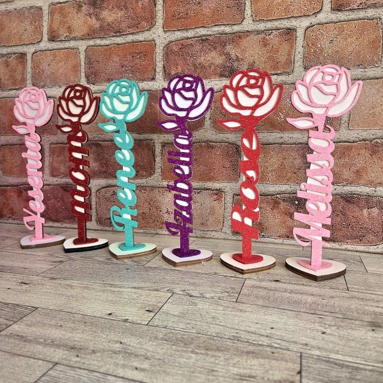 I have a limited number of personalized wooden flowers available at a discounted price. These pieces were previously made with specific names and are ready to go. Message me to check which names are still available or to place a new custom order.