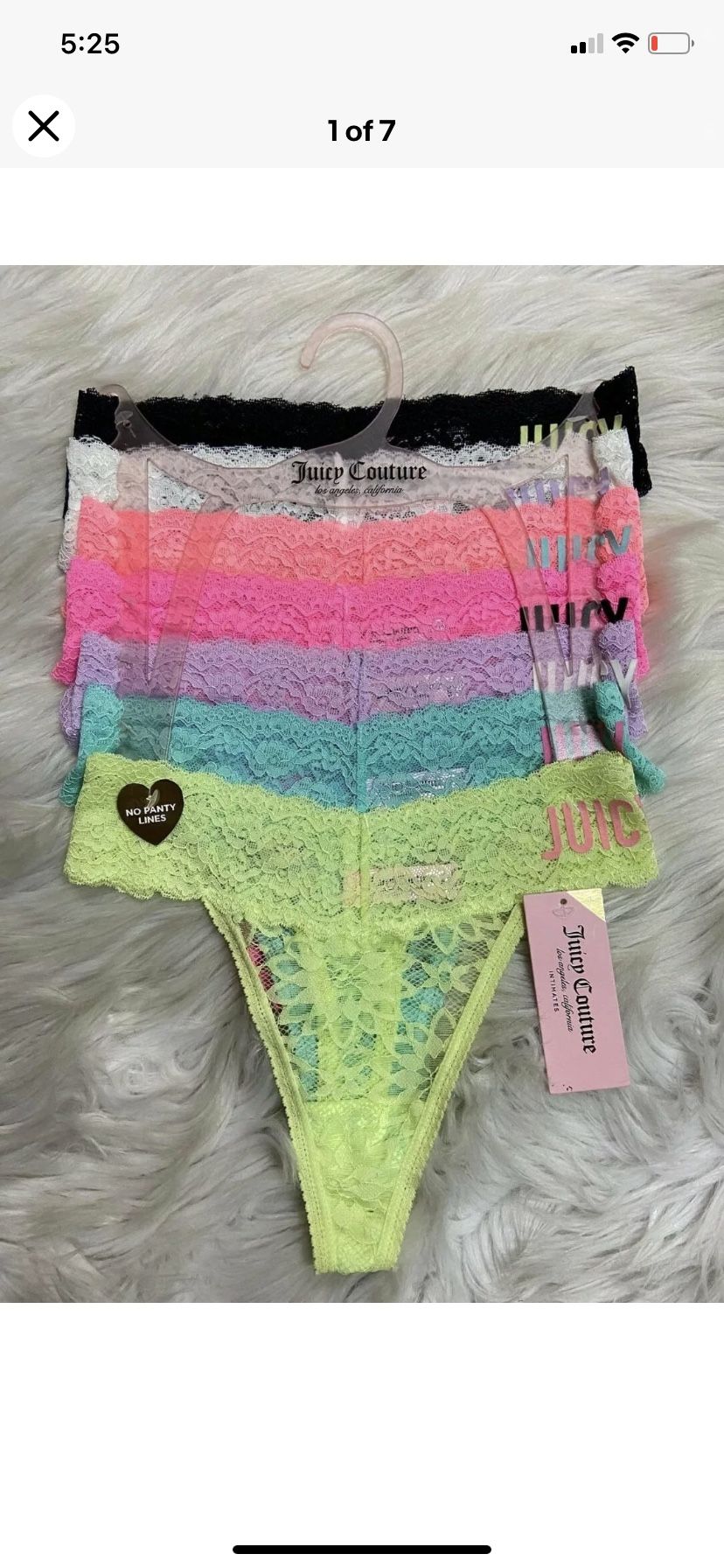 JUICY COUTURE 7 PACK THONGS NO PANTY LINES LOGO WAIST LACE PANTIES size L