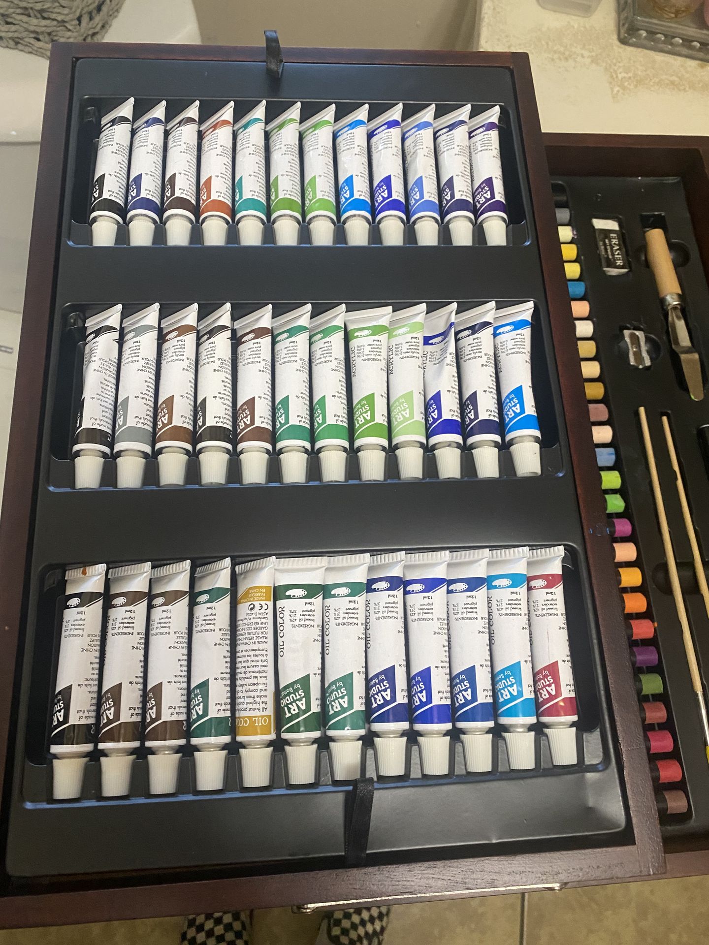 Suit case includes Paints Oil pastels Color pencils Accessories also included Pick up in Hemet.