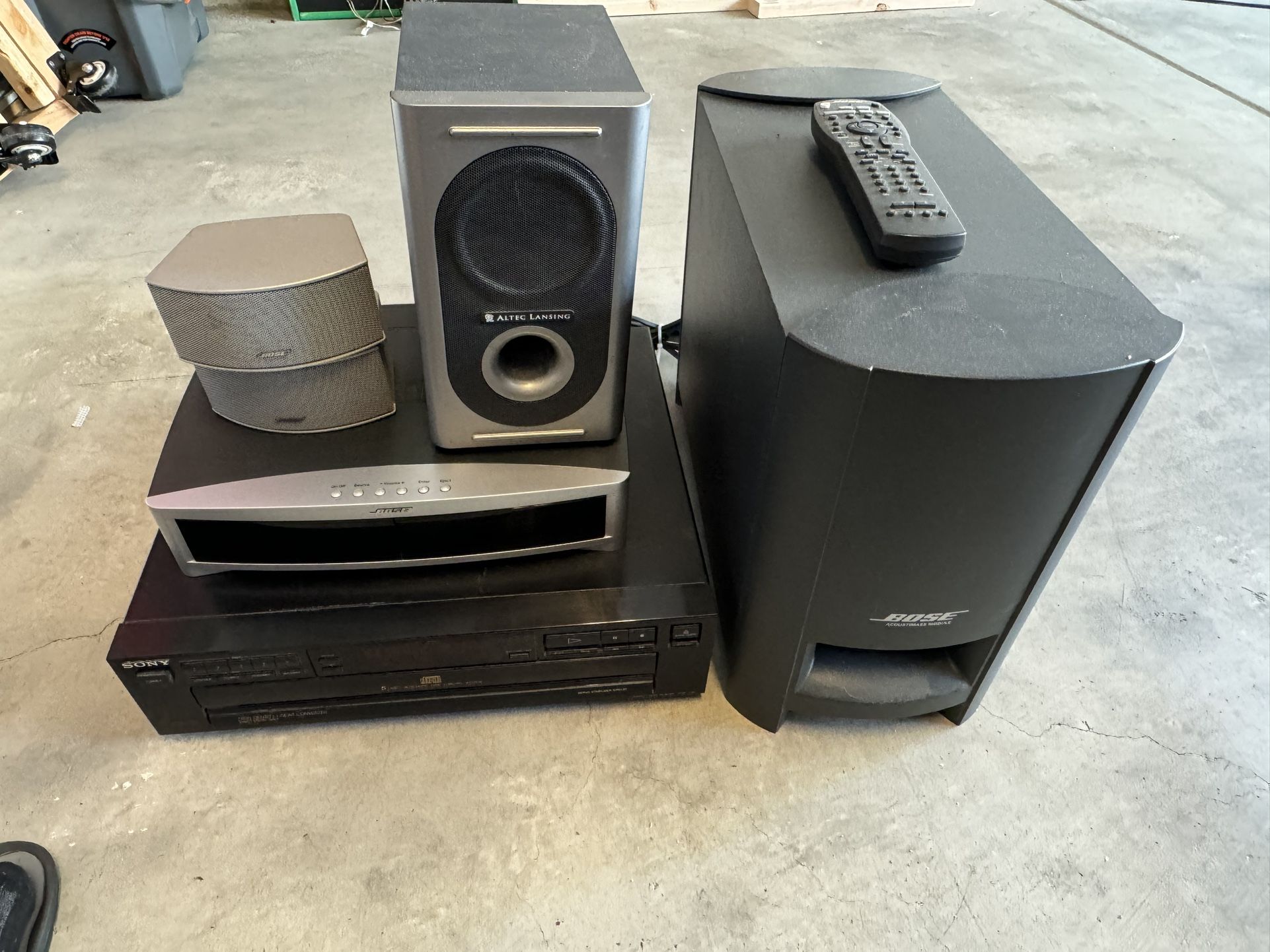 Helped my elderly family member upgrade to new, simpler gear. Selling this stuff for $30. The Bose Speakers were working when removed. The CD changer would skip from time to time but worked. The Altec Lansing and Bose sounded great. Disclaimer you’re buying this stuff as is. It’s been sitting for about 6 months so I don’t guarantee anything. Maybe if you’re handy with this stuff and or need parts this is perfect for you. If you don’t want it for $30, don’t waste yours and my time. It’s $30 or I’ll just trash it. No other offers.