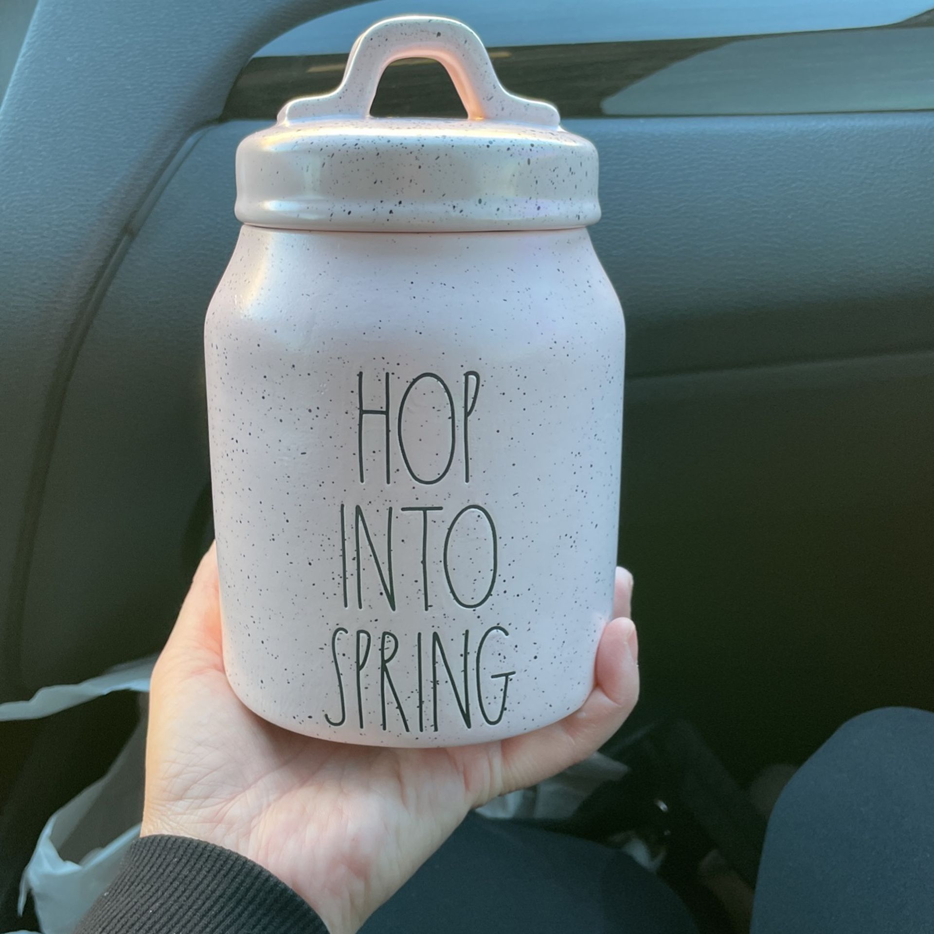 New Rae Dunn Pink Speckled Hop Into Spring Canister
