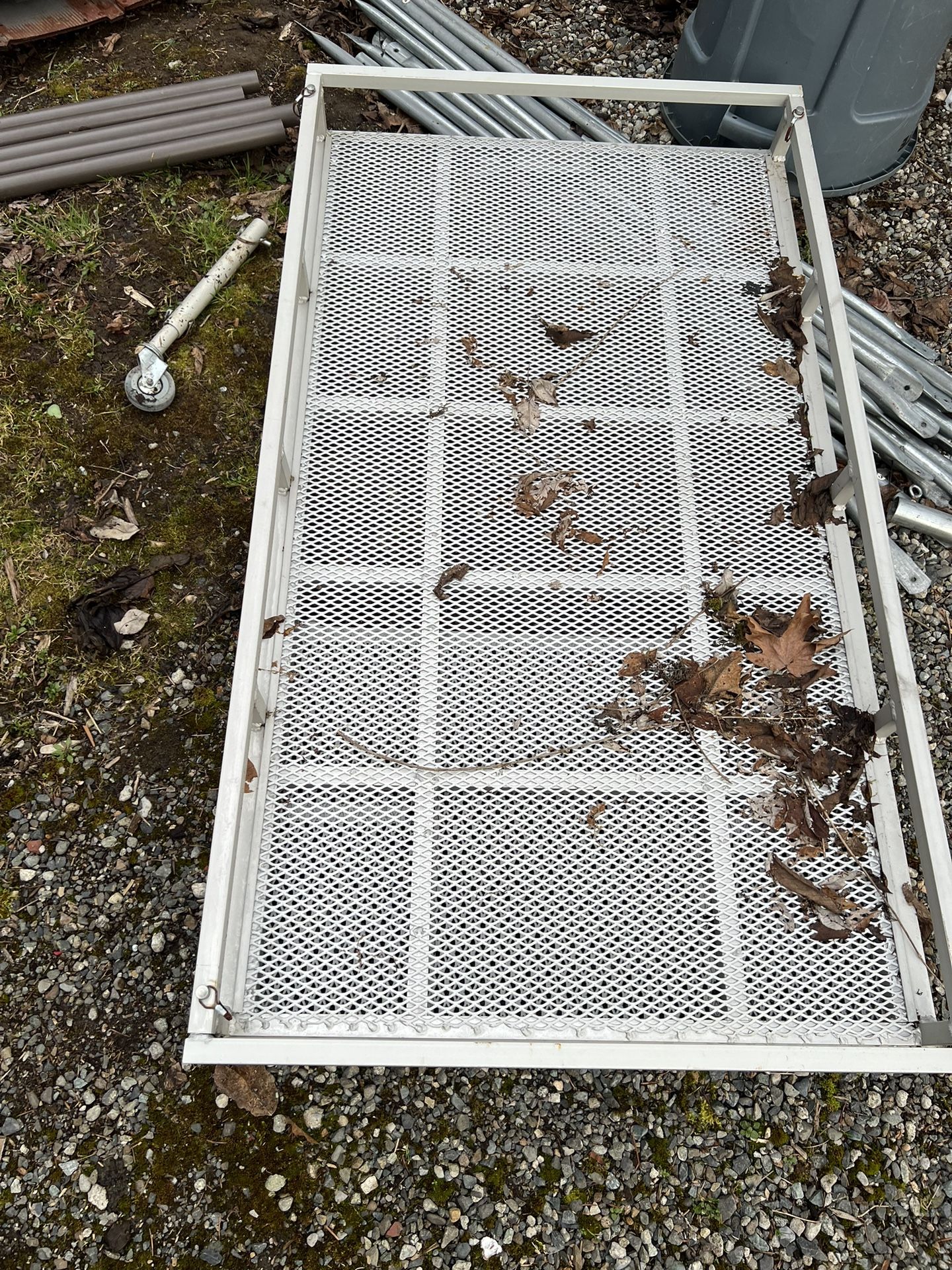 I purchased this but never actually used it. This is very sturdy and heavy. It comes with the wheel leg for transporting and the black hitch attachment. They are currently off of it, because it was easier to transport. We just need to downsize