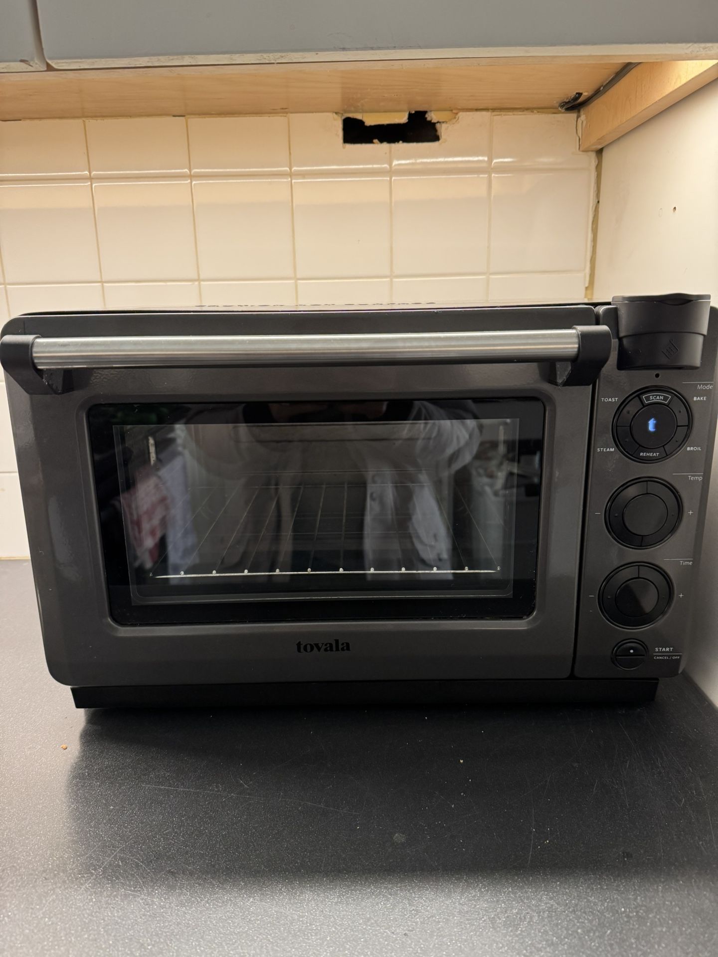 Versatile 6-in-1 Toaster Oven Air Fryer Combo - Unleash your culinary skills with our air fryer toaster oven combo that can switch between Air Fry, Steam, Bake, Broil, Reheat, and Toast cooking methods. Create custom, automated cook cycles with 1 or more modes for perfectly cooked meals every time. Controlled by Integrated Smartphone App - Easily set your microwave air fryer combo to use one or multiple modes, receive notifications when your meal is ready, enjoy the convenience of Tovala Meals (sold separately), and browse a wide selection of over 1,000 scannable groceries for an effortless cooking experience. Effortless Cooking at Your Fingertips: With the smartphone app, access hundreds of presets and make chef-perfected recipes with ease. Simply follow the prep steps in the Tovala app and press "cook" to let the convection countertop oven using air fry, steam, and other cooking modes do the rest. 1,000+ Name Brands at Your Fingertips - Discover a wide selection of well-known pantry essentials and frozen foods for quick and delicious meals. No need to preheat your airfryer toaster oven! Make the most of the spacious air fryer basket and compact sheet pan included with the air fryer toaster oven for ultimate convenience. Effortless Meal Subscription Made Easy - Enjoy fresh, pre-prepared meals with just a touch of a button. Our convection oven countertop is compatible with Tovala's meal subscription service, delivering perfect cooking results with minimal prep. Each oven comes with a $50 credit for 3-5 Tovala meals. You have the flexibility to pause, skip, or cancel your subscription at any time (sold separately).