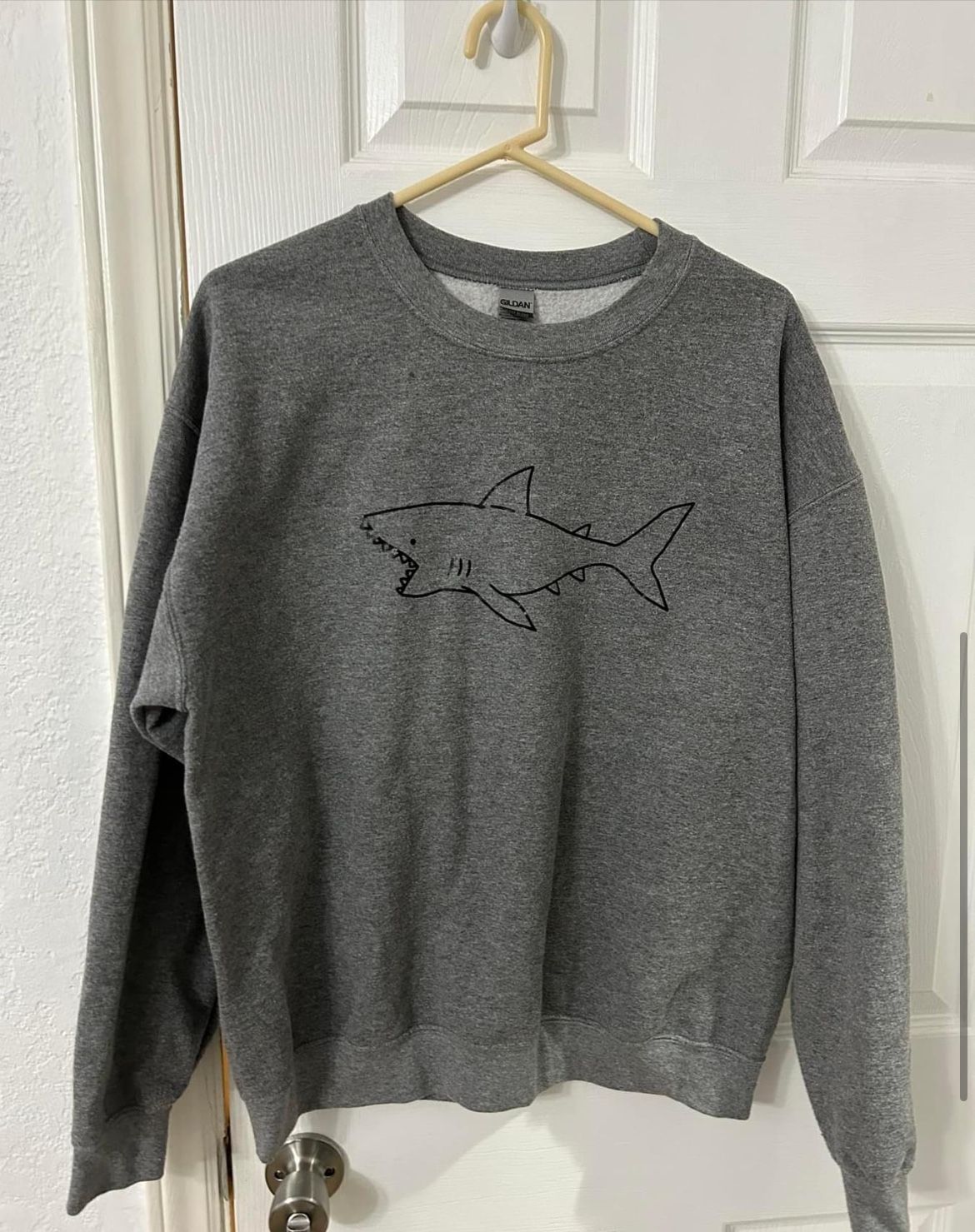 Gildan Shark sweatshirt. Gray like new. Size Large. Perfect for the shark lover in your family. Only $10