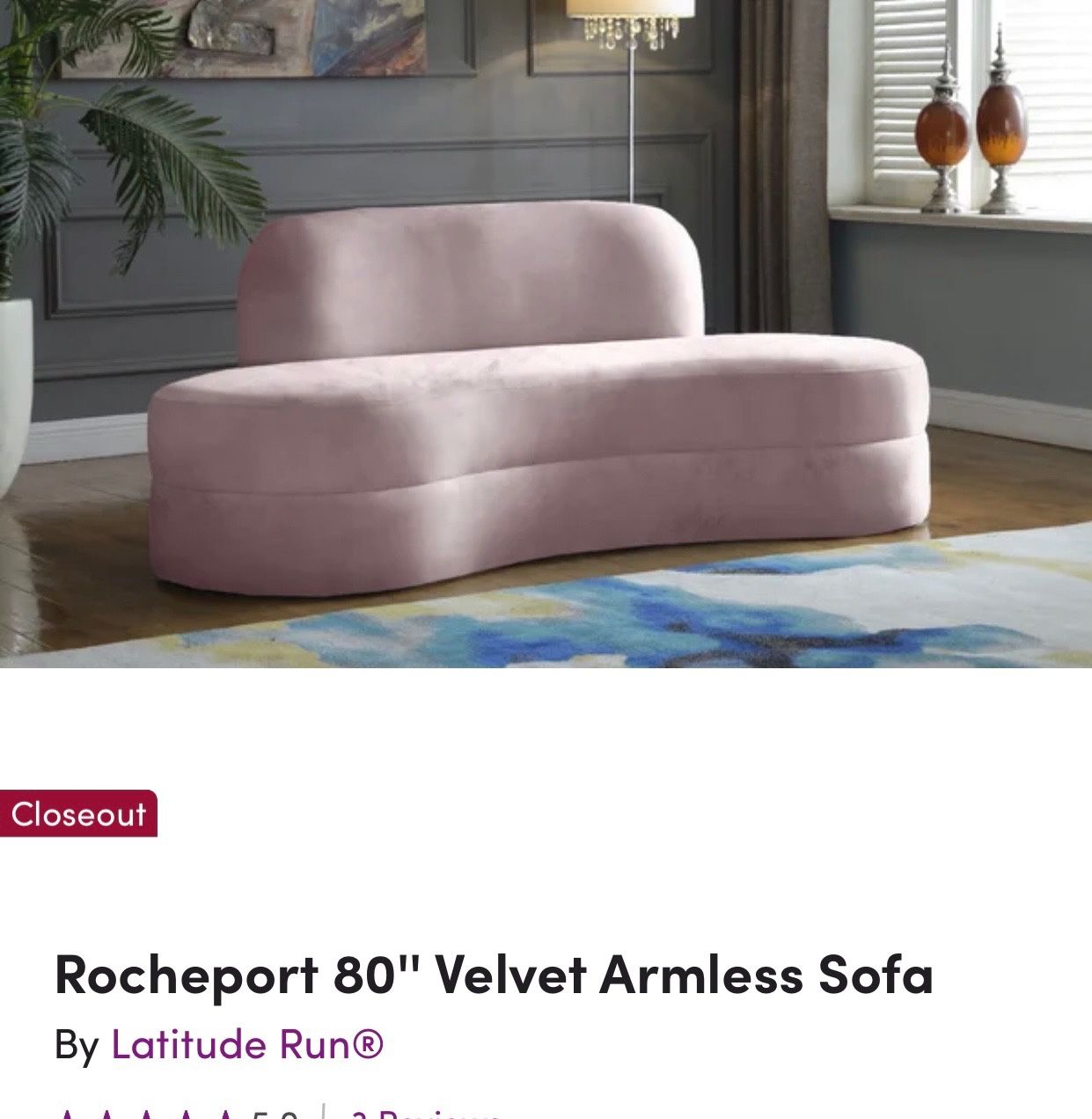 Unique, new and never used blush velvet armless modern sofa purchased from all modern on closeout for $1,600. Storing in double layered plastic for protection. Willing to sell for $950 or best offer. One of a kind and a true conversation piece!