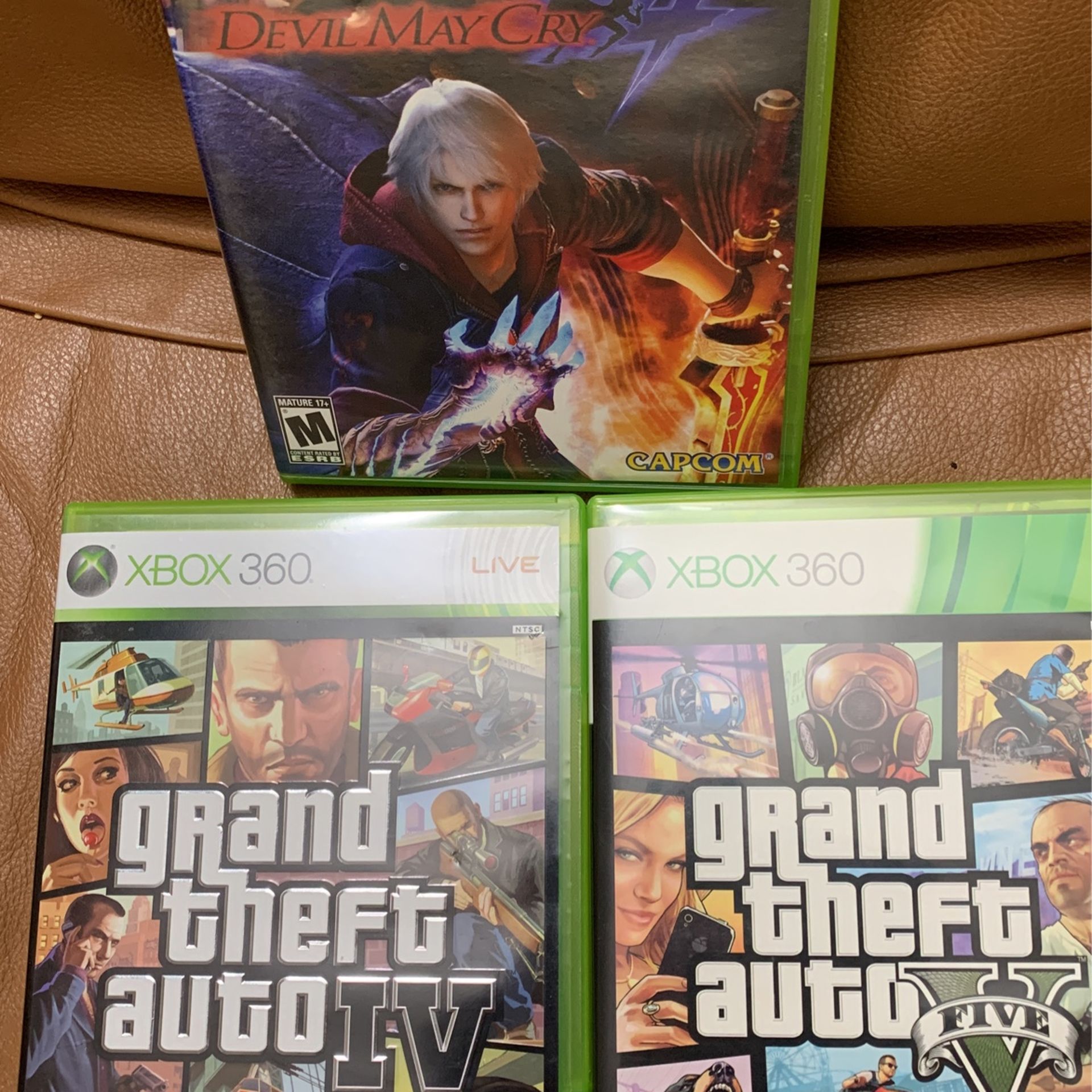 Xbox 360 games 1. Devil may cry 4 2. Grand theft auto 4 (GTA 4) 3. Grand theft auto 5 (GTA V) Games in great condition Pickup only