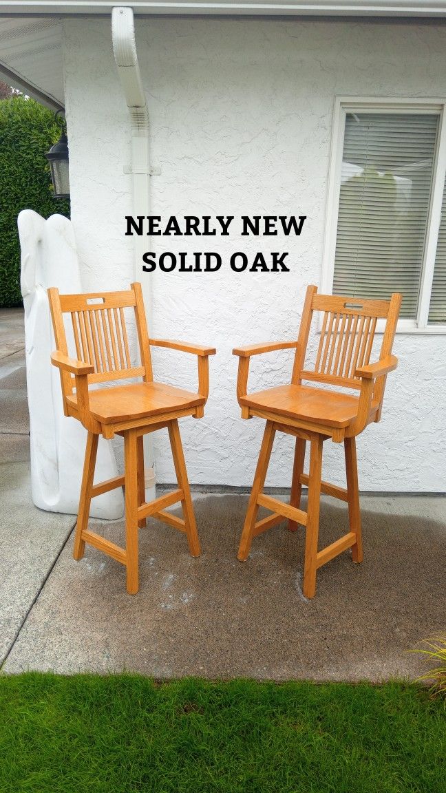 $150 CASH FIRM PICK UP ONLY IM IN TUKWILA ★2 SOLID OAK BAR STOOLS 30" Seat Height , Spinning seats NEARLY NEW bought and have been stored in garage 2 SOLID OAK BAR STOOLS - NEARLY NEW