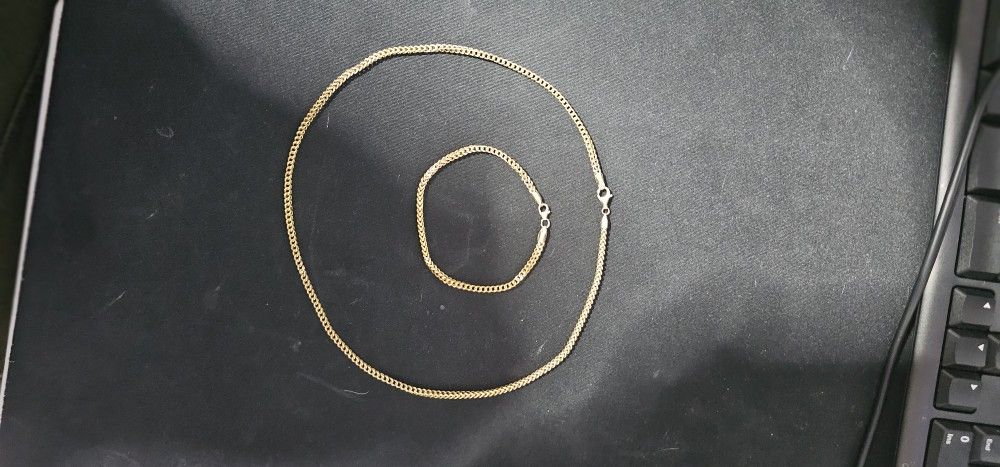 14k 14.45G total weight for a 19 inch chain and 8 inch bracelet that was made from the chain. The bracelet was broken and has a weak spot shown in pics.1300 obo