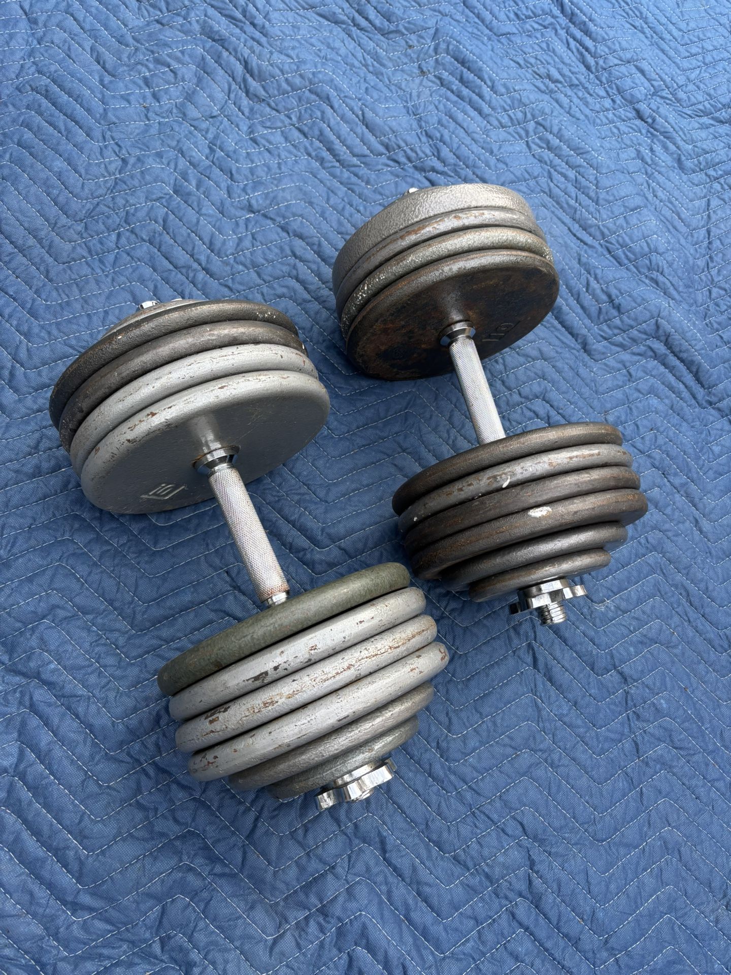 5-100 lbs each dumbbell 16x10 4x5 lbs 4x2.5 lbs Handles dumbbells $200 firm Check listing for more gym stuff Keywords Weights gym dumbbells exercise squat rack weight bench dumbbell concept 2 rowing machine rower spin bike rogue crossfit power rack rogue bowflex water rower echo bike airdyne assault fitness treadmill elliptical bowflex max trainer Titan rogue
