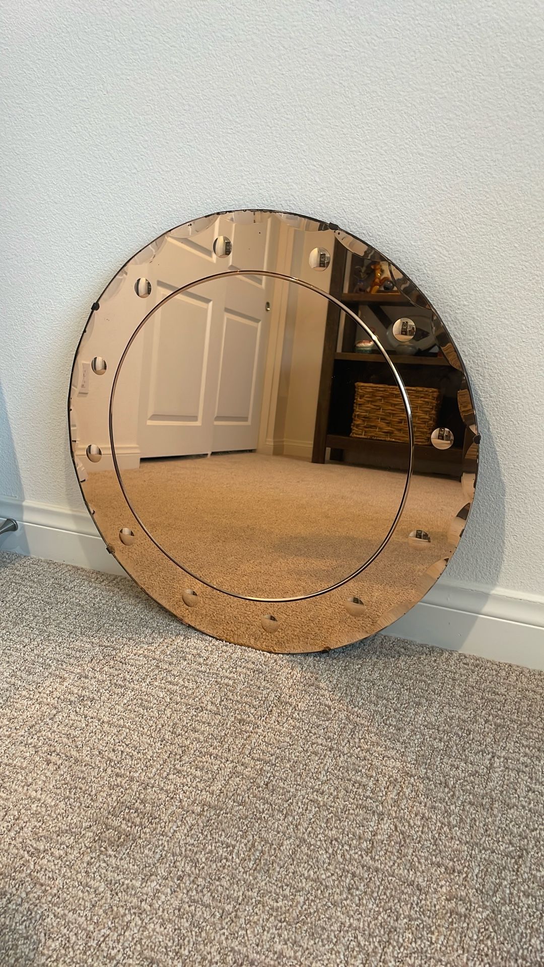 Easily identified as Italian glass from the birch plywood used on the back in excellent condition retails for $900-$1200 ,22” in diameter