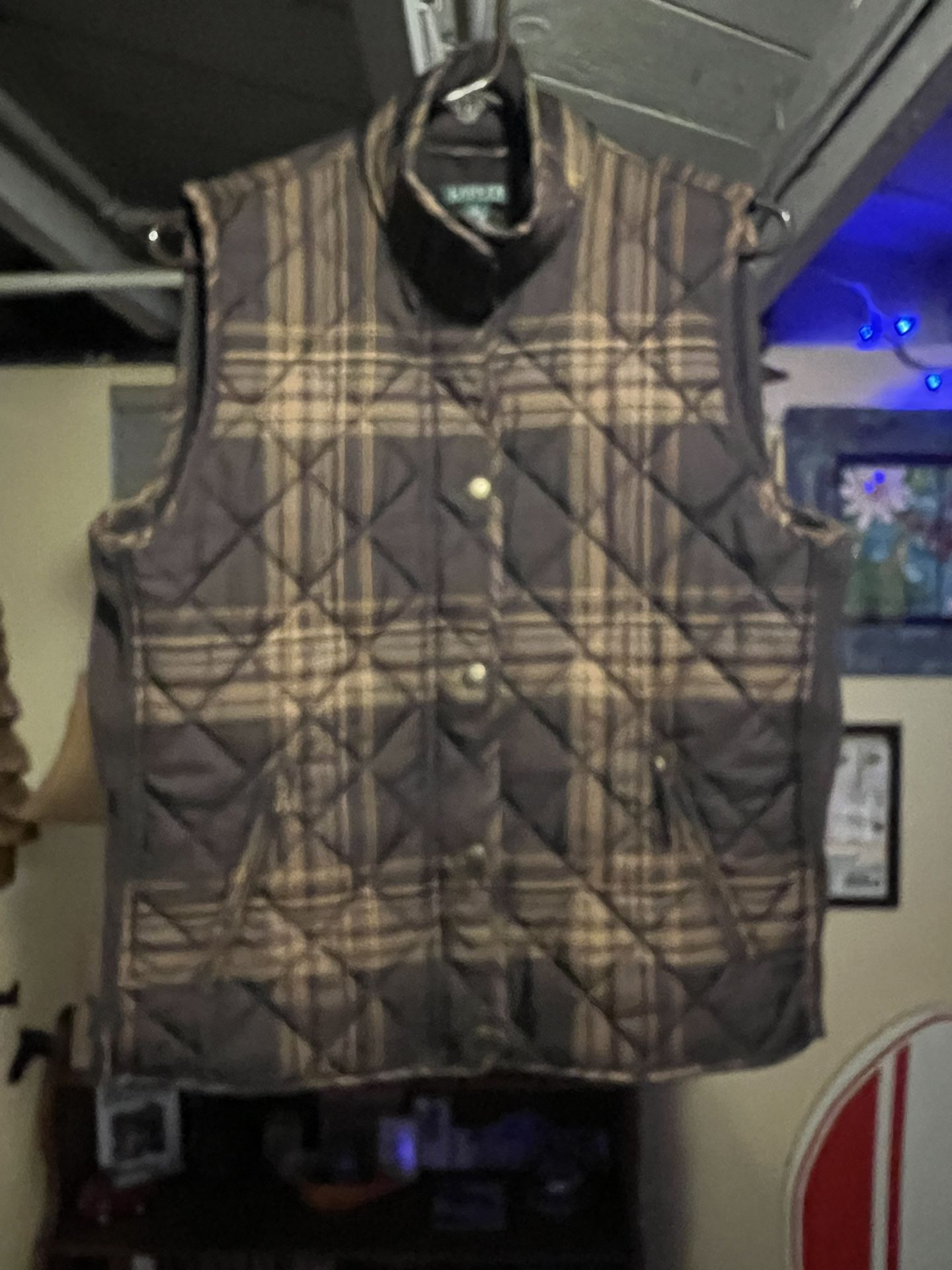 Women’s Large Ralph Lauren Polo Brown Plaid Polyester Vest