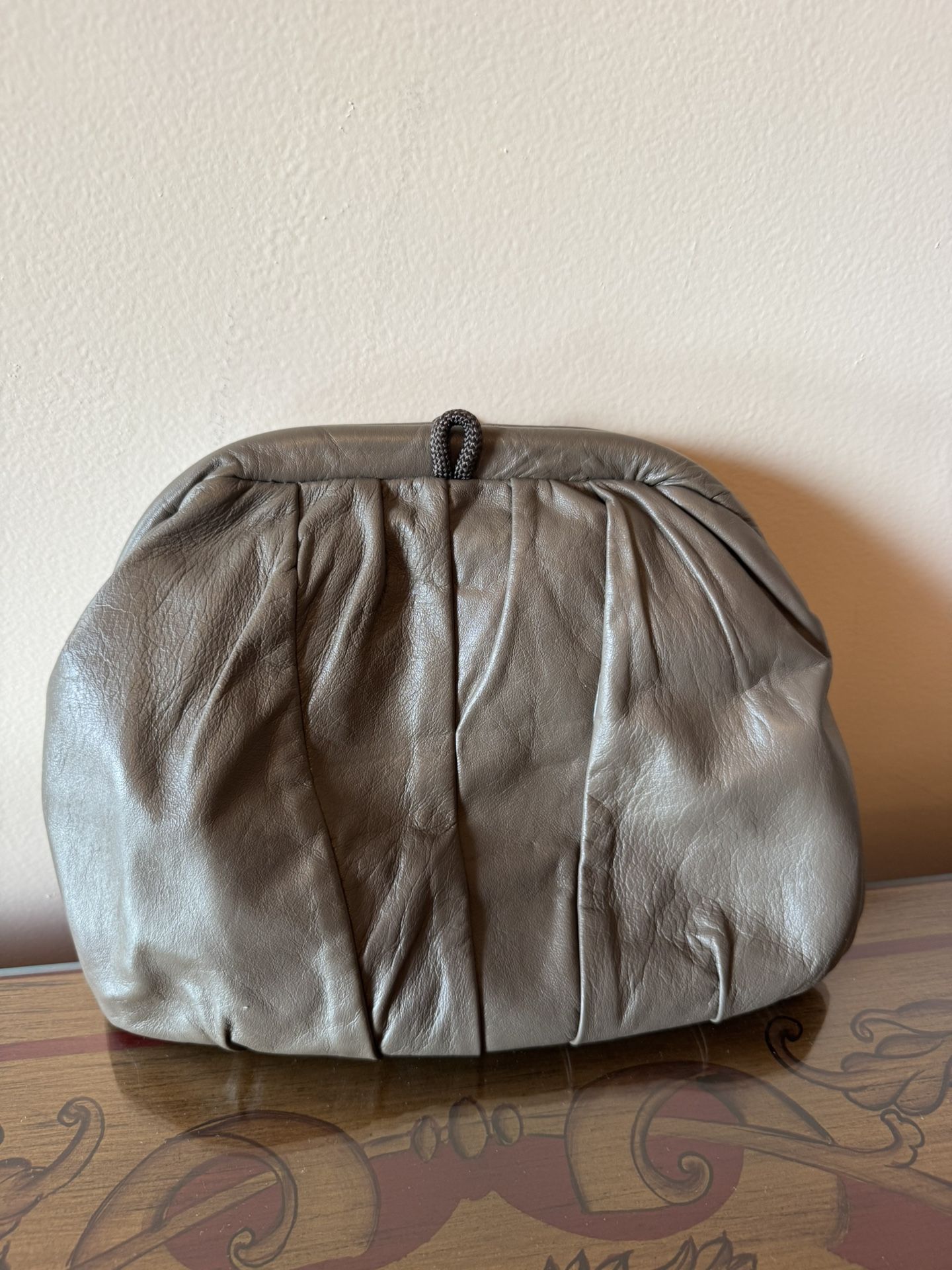 DRAMATIC PRICE DROP: VINTAGE NEVER USED Premium Quality Leather/Leather-lined Khaki Green/taupe Crossbody/Shoulder Bag/Clutch By YOEL NEW YORK