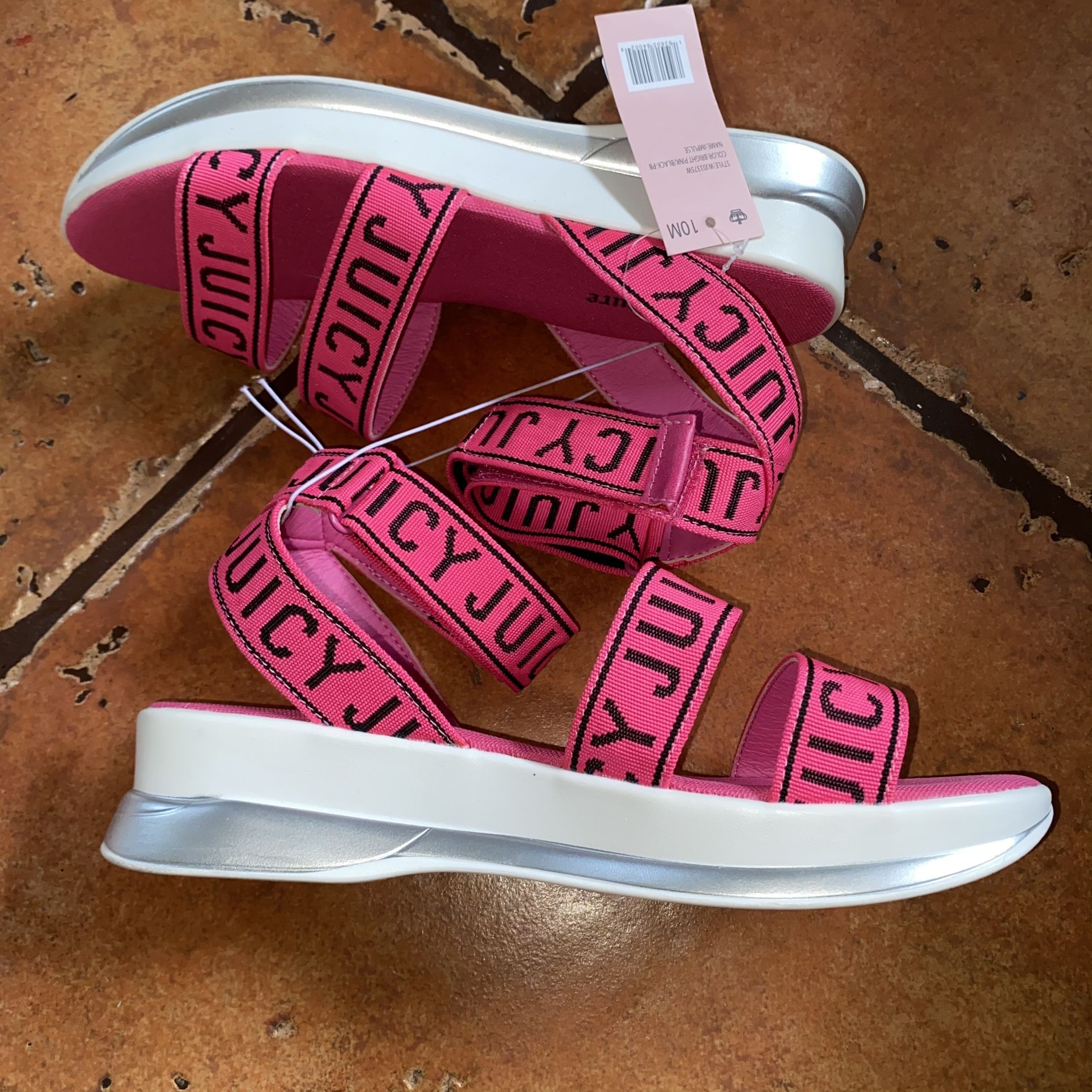 Juicy Couture Impulse Strap Sandals Size 10 Adjustable Velcro Ankle Straps Wedge Heel Pink