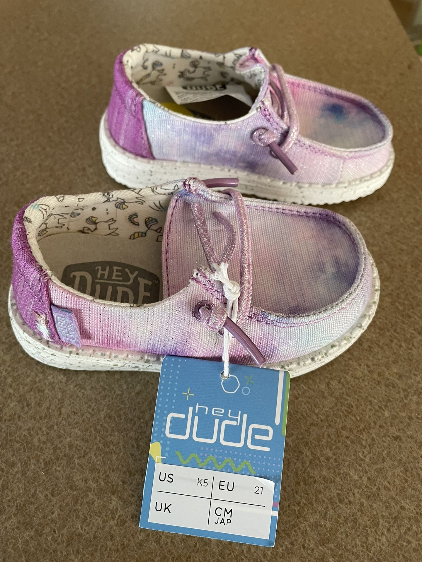 Lightweight and easy to wear, these toddler girls’ Hey Dude Wendy Dreamer slip-in shoes feature a breathable canvas upper and elastic no-tie laces for fuss-free on/off wear. Designed for everyday play and comfortable all-day activity, they sit on an ultralight flexible outsole that keeps little feet moving freely. Machine washable for easy care and perfect for playdates, outings, or everyday wear.