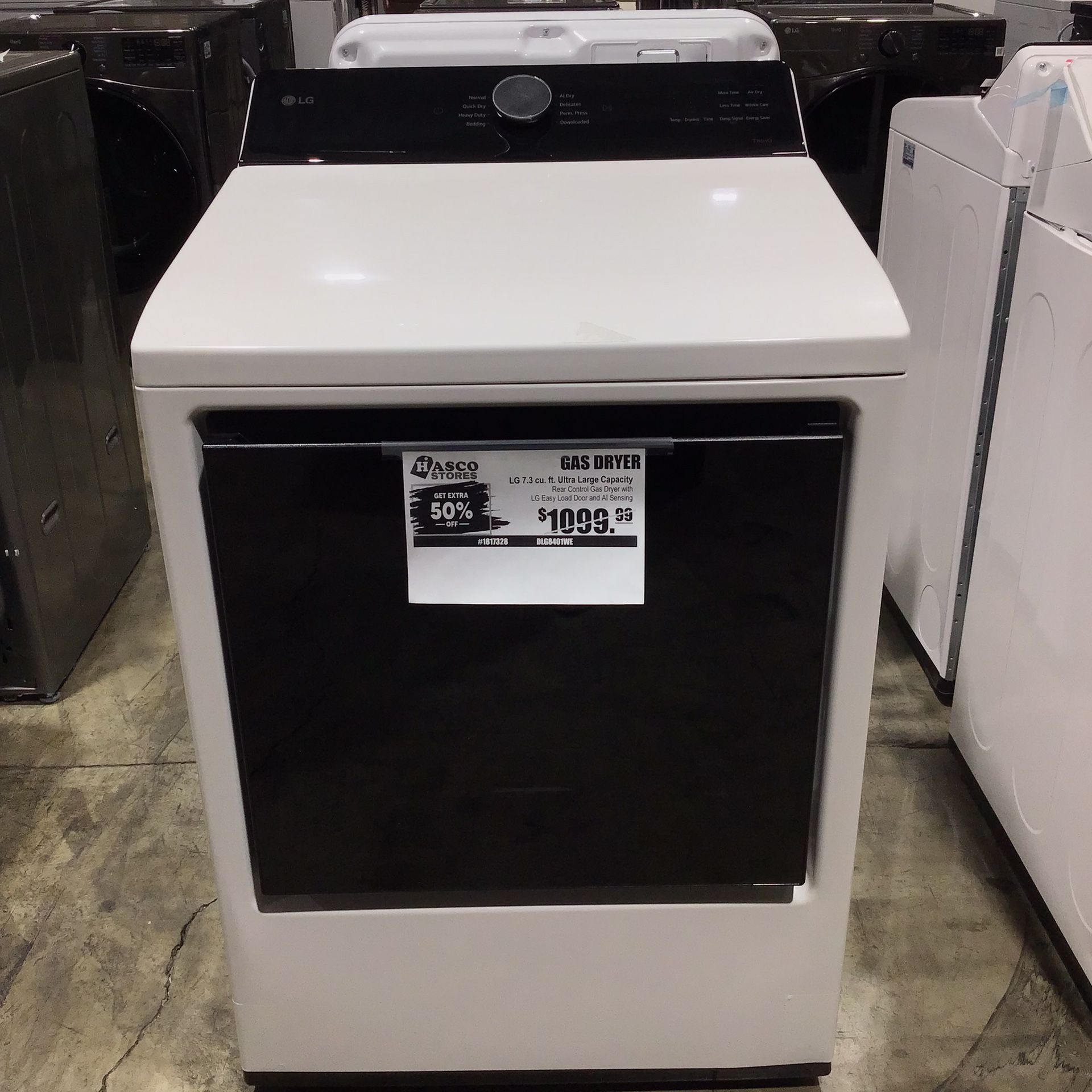 LG Gas Dryer 7.3Cu Ft Model# DLG8401WE $549.99 You are welcome to come in anytime during our business hours Hasco Wholesale 2220 S Vineyard Ave Ontario CA 91761 Store Hours: Monday-Saturday: 10am-7pm Sunday 11am - 6pm