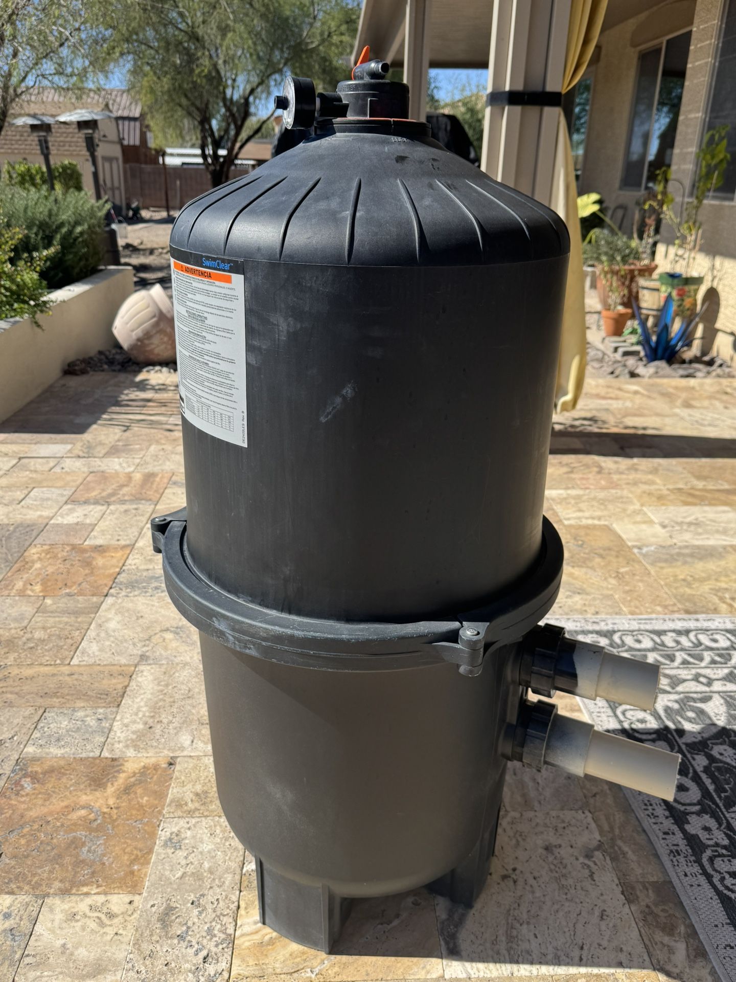 Upgraded my pool filter to AquaStar 3500 pool filter. For sale is a lightly used Hayward SwimClear cartridge filter. All my pool equipment are protected from direct sunlight with Sunaway enclosure. My pool was built in April 2024 so filter is practically new. Brand new filter will cost over $2000. I will include 4 filters that are barely a year old. Each filter costs $189 each on Amazon. I’ll throw in the original 4 filters from when pool was built in 2024. I bought a second set to alternate between cleanings. So included in price will be 8 filters that brand new will cost $189 each on Amazon. The Hayward SwimClear 525-Square-Foot Pool Filter with a top manifold configuration provides excellent filtration and hydraulic performance for reduced cost of operation. Cleanable cartridge elements eliminate the requirement for backwashing. Filter tanks are made from the most durable materials to meet the demands of the toughest applications and environmental conditions. Heavy-duty, tamper-proof, one piece flange clamp securely fastens tank top and bottom and allows quick access to all internal components. High-capacity, rapid-release manual air relief valve bleeds air with a quick quarter turn of the lever.