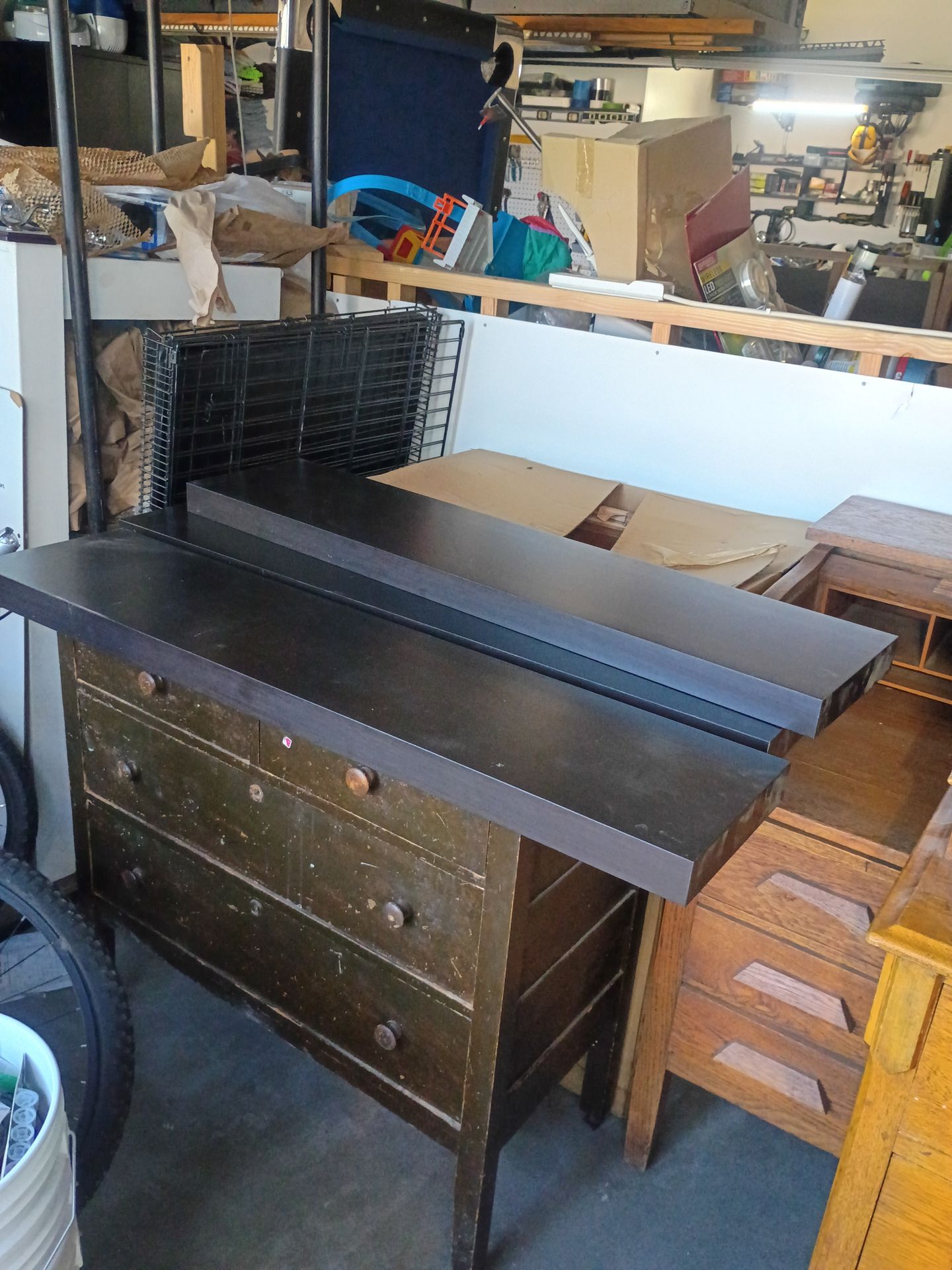 Ebony 43" x 10" x 2" floating shelves. Needs screws, but has brackets