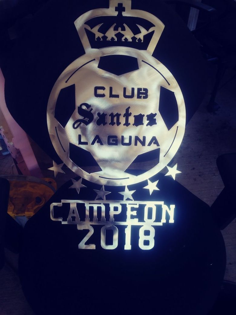 Santos laguna logo campeon 2018 De 1/8 metal solido Mide 23 pulgadas de alto y 13 de ancho Ae puede hacer al gusto (agregar o quitar ) por cargo extra Gracias