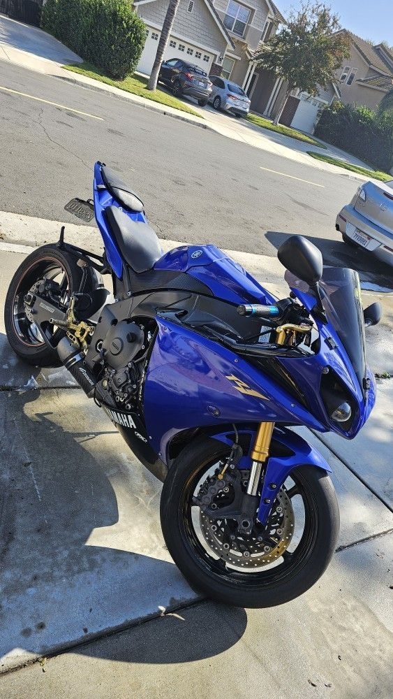 I dont use this anymore. Sits in the garage waiting for you. Come get it. NO TRADES. 2009 Yamaha R1 1000cc Clean Title Garage kept Registration good until july2026 34,000 miles Power commander Manual cam chain upgrade Rear tire 75% Front racing tire ( have a stock style front tire included) Many upgrades •Oil changed •breaks •New Bearings •new battery(I have receipt for warranty) •Chain maintenance