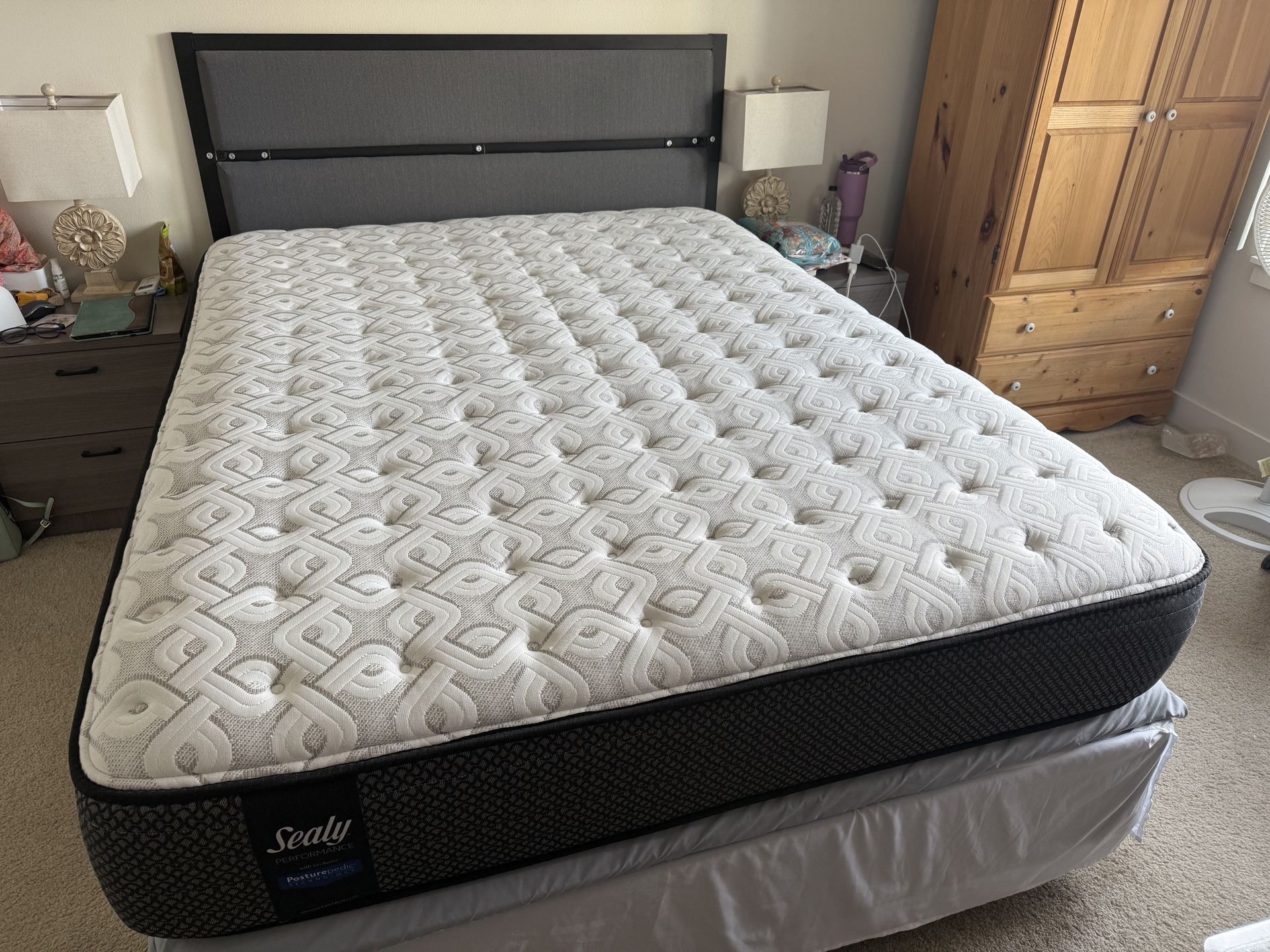 Move out sale: Sealy Queen Mattress (fairly New used with Mattress protector), Box Spring (Bed Skirt), Frame and Headboard all included. pickup from Space Needle