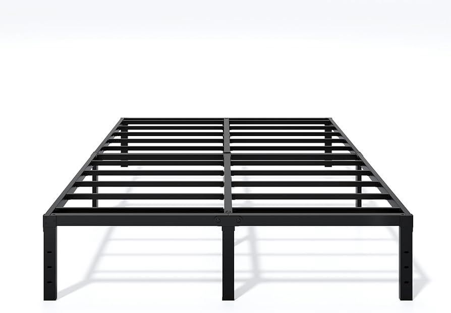 B583 $45 Metal Bed Frame Queen Size - 14 Inch Heavy-Duty Queen Platform Bed Frame No Box Spring Needed, Easy Assembly, Noise-Free, Sturdy Mattress Foundation, Underbed Storage Space Size Queen Material Metal Product Dimensions 79.5"L x 59.6"W x 14"H Style 14 Inch Special Feature Squeak Resistant Color Black Minimalist and Stylish: Bed frame queen features a sleek, minimalist and simple design, will complement all your room styles, bedroom, guest room, dormitory, hotel, etc Sturdy Construction and Noise Reduction Design: Bed frame is constructed of heavy duty metal frame for large load-bearing capacity, sturdy, no shake, no squeak, provides a quiet and comfortable sleep all night long Space Saving: Queen bed frame has a large storage space under the bed, which brings more storage space for storing extra odds and ends, easy clean and keep the room neat & organized Quick and Easy Assembly: Metal bed frame privides all the necessary hardware and tool, with illustrated installation manual for quick and hassle-free set up Queen Bed Frame No Box Spring Needed: Bed frame queen size provides ample support for various types of mattresses without the need for an additional box spring. And bed frame legs reserved 3 holes to connect the headboard or footboard usan1080709-3