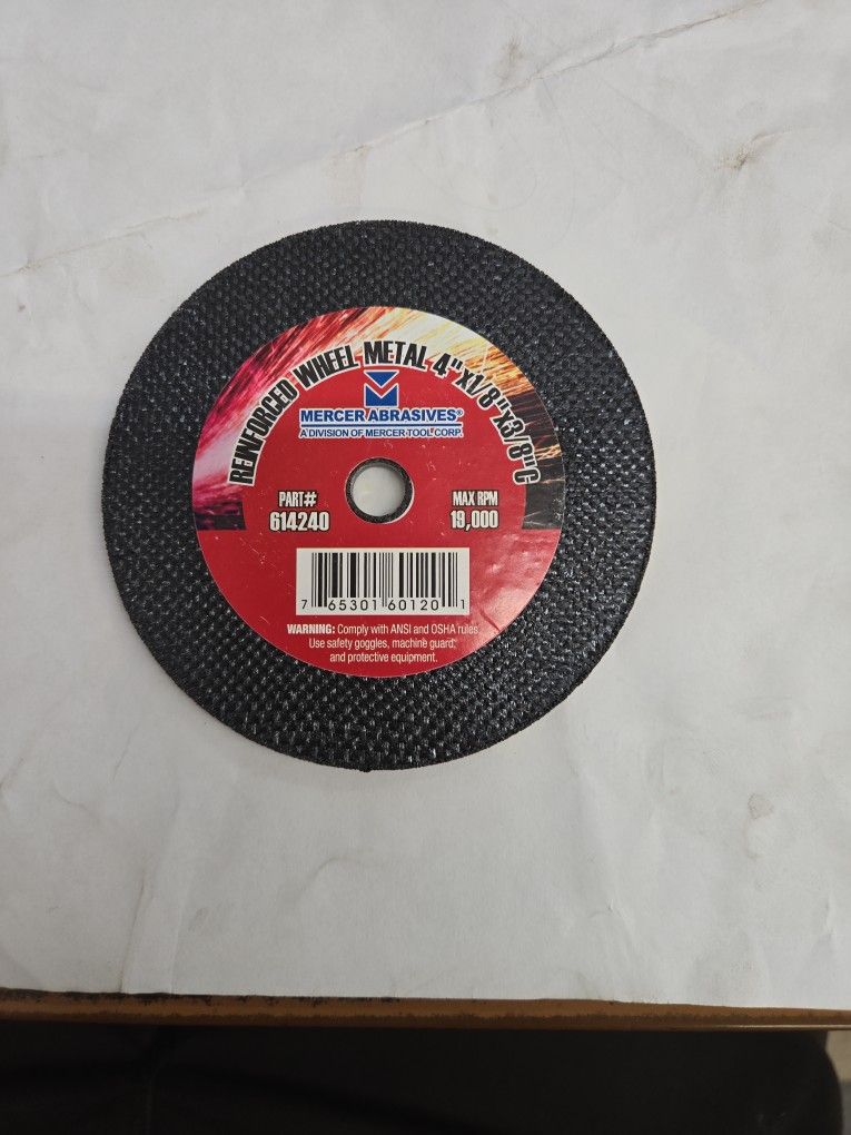 4 inch by 1/8 by 3/8 cutoff wheels..mercer abrasives part number 614240.. have 14 boxes 50 to a box $30 a box