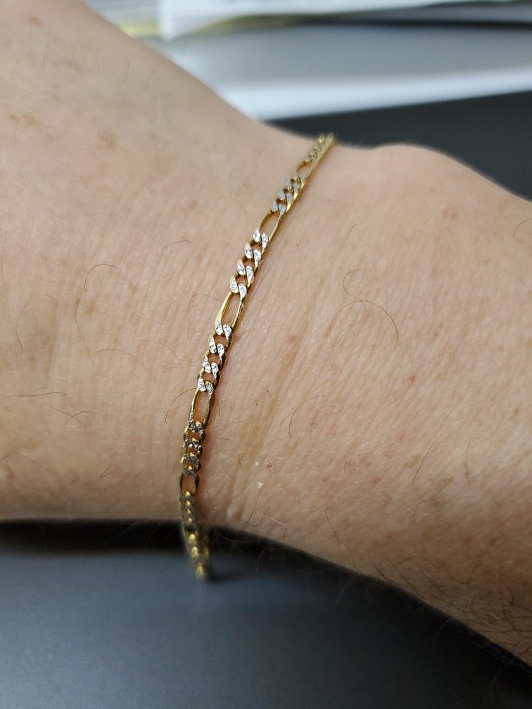 If reading this ad then its still available Real Gold 10kt 2tone figaro link bracelet 9inch, 3.5gr. Retail prices from $450.00 New condition. To verify we meet at jewelry shop at 6114Mayfield rd 44124 12-5pm by appointment mon-sat