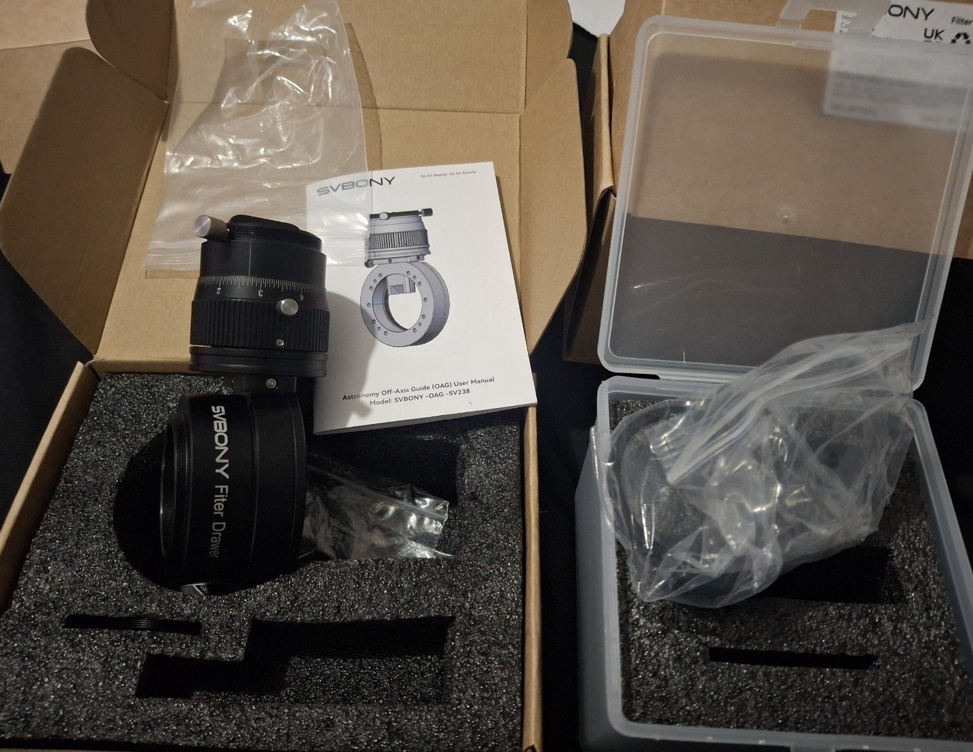 SvBony SV238 OAG off axis guiders with matching sv226 m48 to m54 filter drawers
