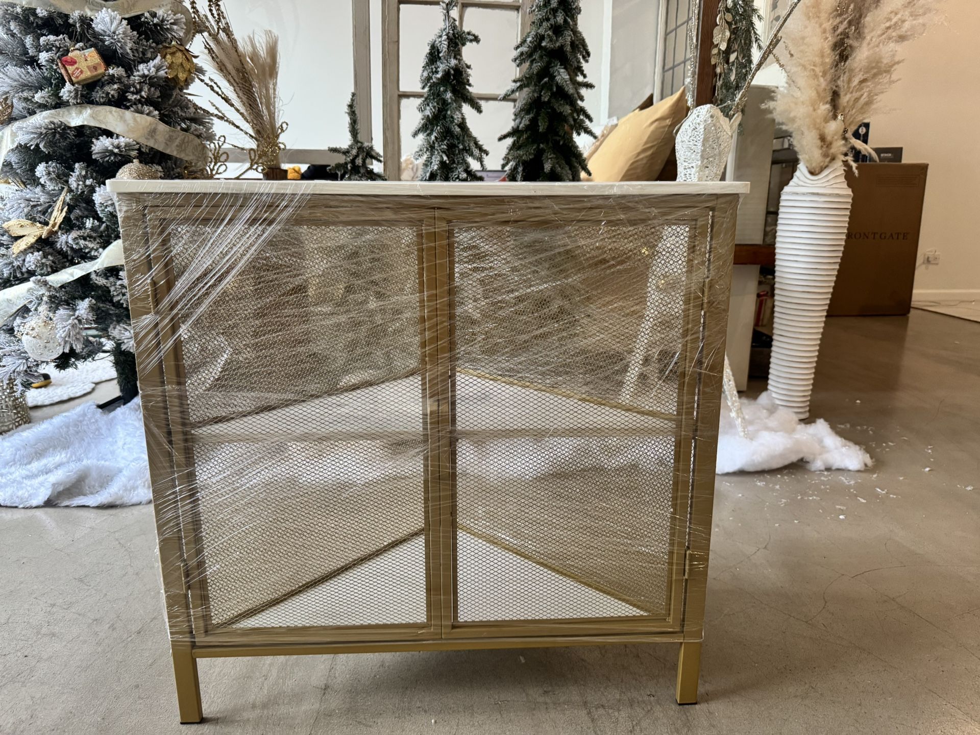 The White and Gold VECELO 3 tier corner cabinet is ideal for small spaces, apartments, dorms or any place with a limited amount of space. The corner cabinet features warm retro color panels and matte gold tubes, which are perfectly integrated into any home decor.