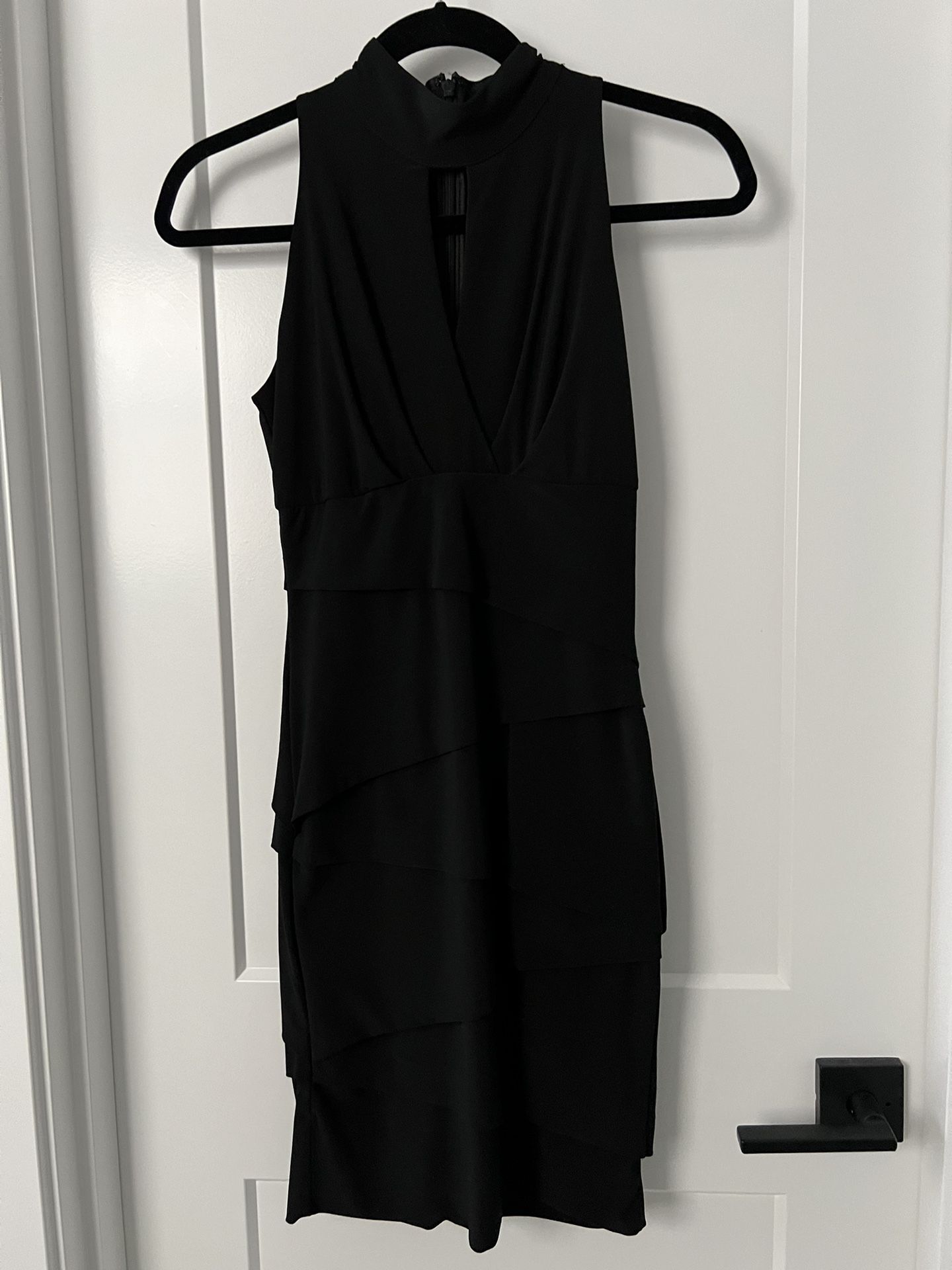Like new, worn once! Very flattering sleeveless, cute key hole neckline, back zipper. Tiered styling. black, size 0