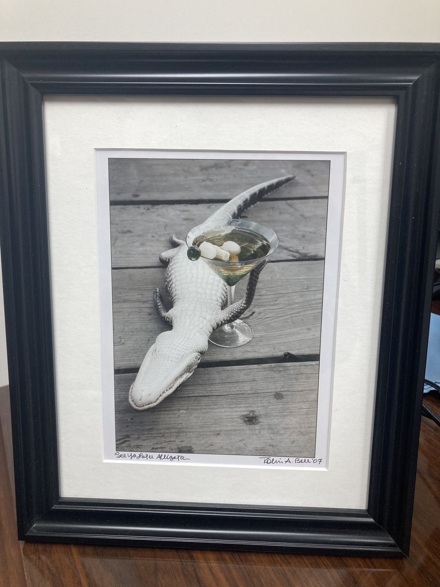 Robin Bell: See Ya Later Alligator With Martini Louisiana Photography Print Photographer: Robin Bell Title: See Ya Later Alligator Type: Photograph Framed and matted. Autographed.