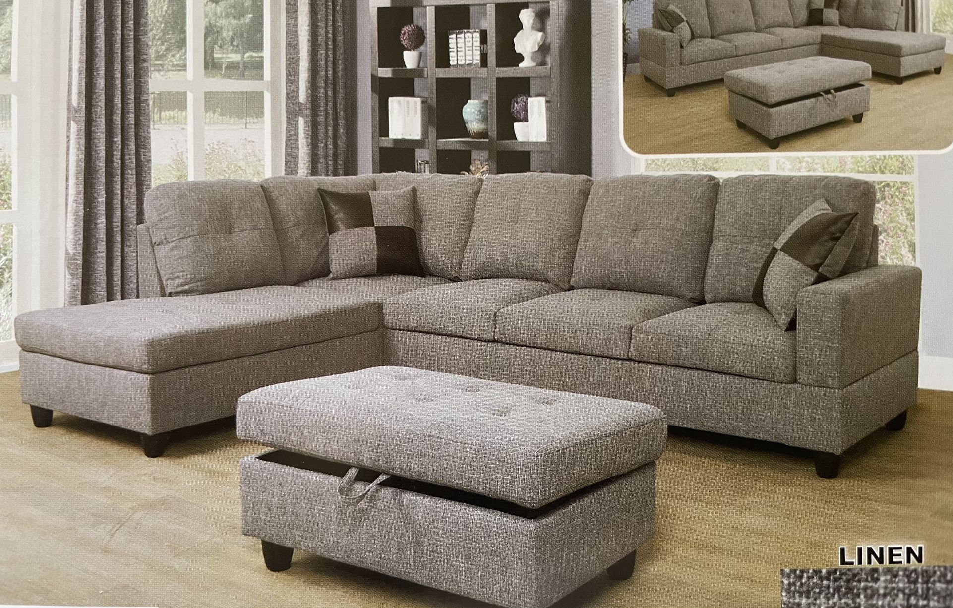 Grey Linen Sectional Couch And Ottoman