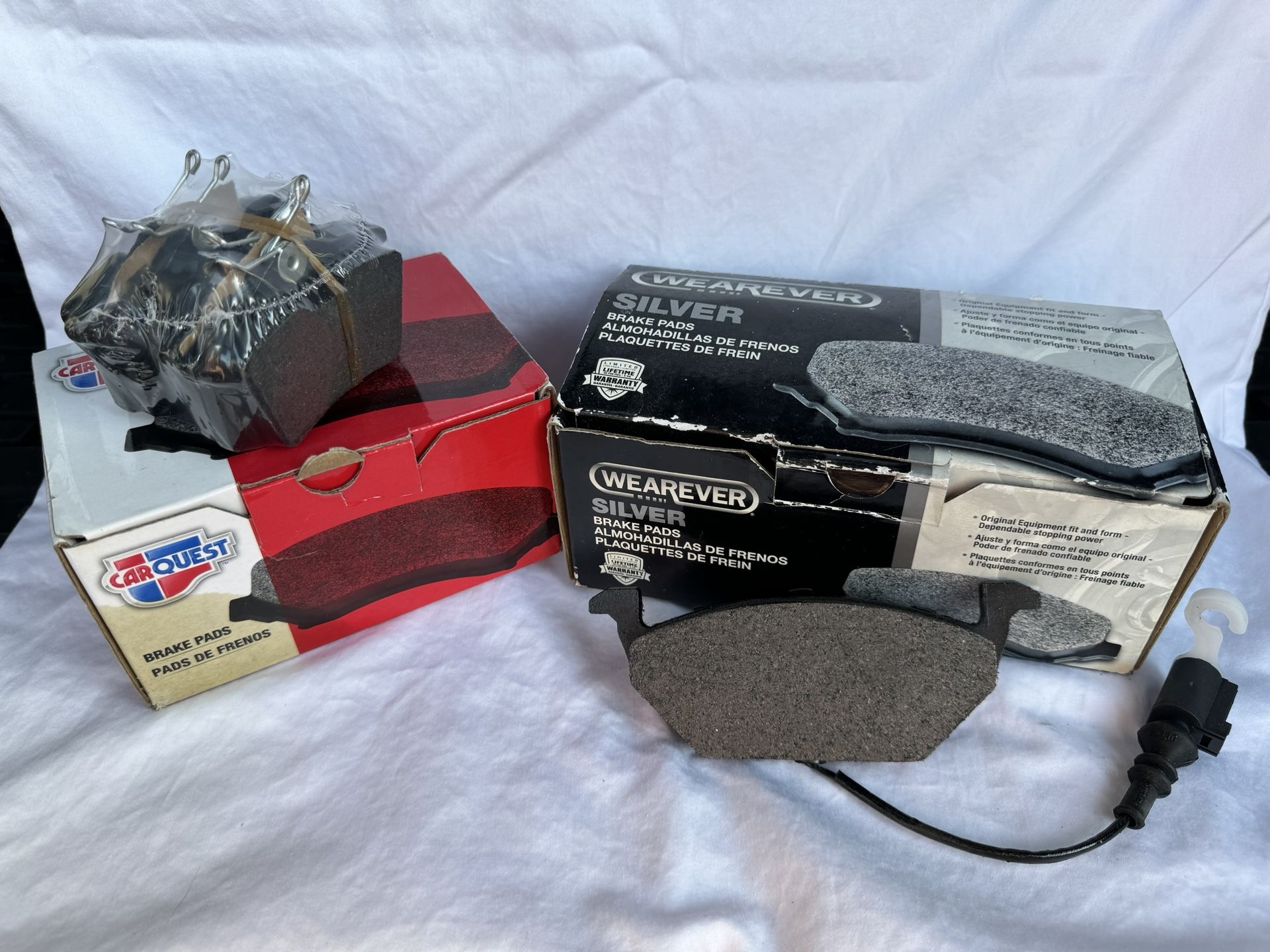 Two boxes of brake pads: - Carquest Rear Brake Pads MKD340A - Wearever Brake Pads MKD768A Brand new, never used.