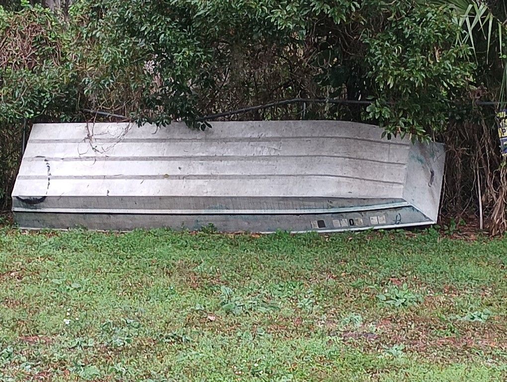 This is a metal boat that has a couple of holes inside of it.... The boat does not have a motor or a trailer I am looking to sell or trade the boat for gold or silver..a small camper or rv ....house cleaning.....baby chicks.....car battery chargers.....house repair ....window screens ... Fruit trees....