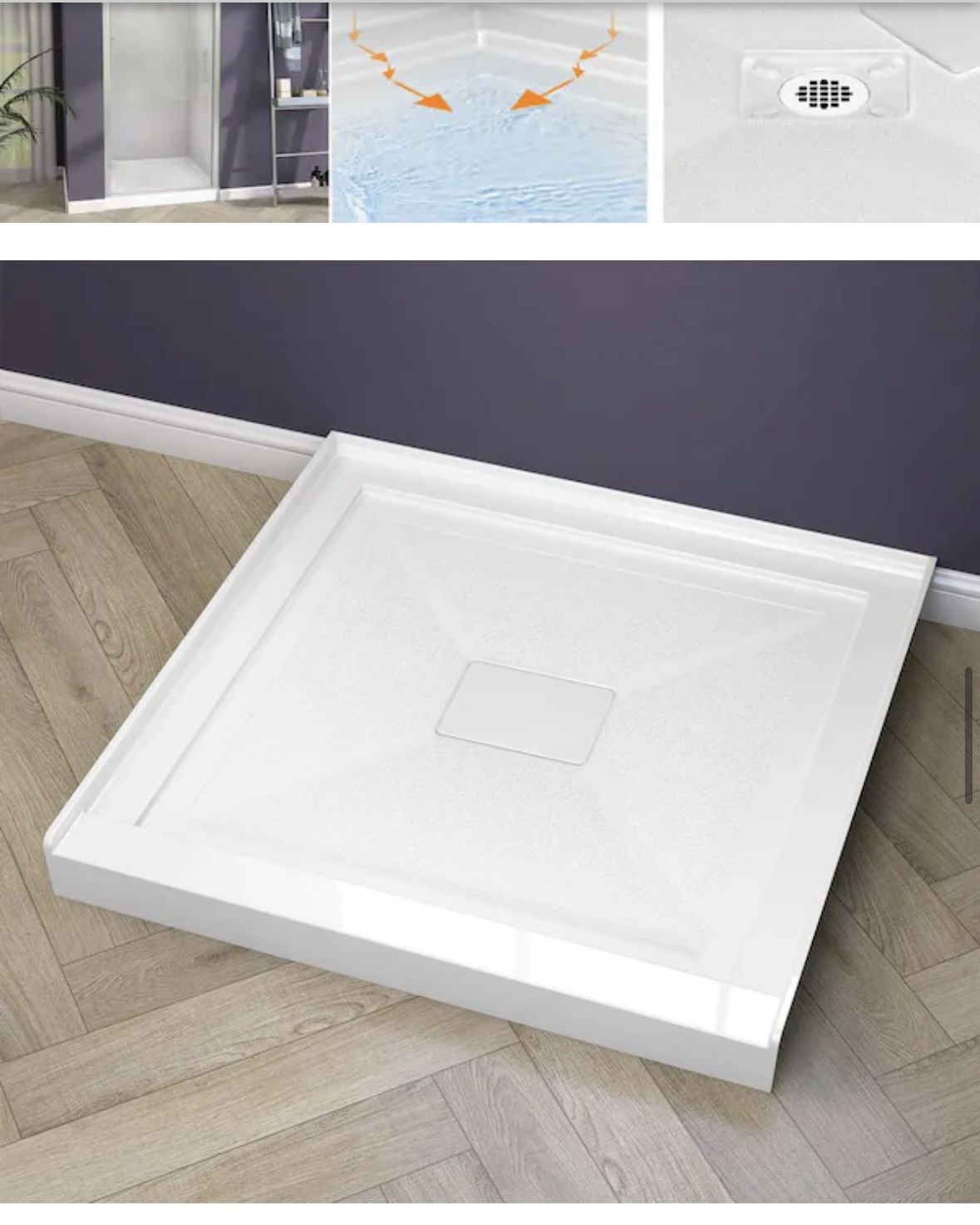 NTQ 30 in. L x 30 in. W Acrylic Single Threshold Alcove Floor Rectangular Shower Pan Base with Center Drain in White ..$100 no delivery
