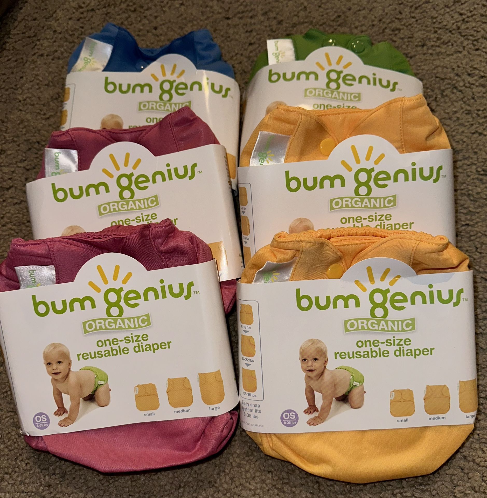 Brand New (6) Organic Bum Genius One Size Reusable Cloth Diapers. I spent $25 for each one.